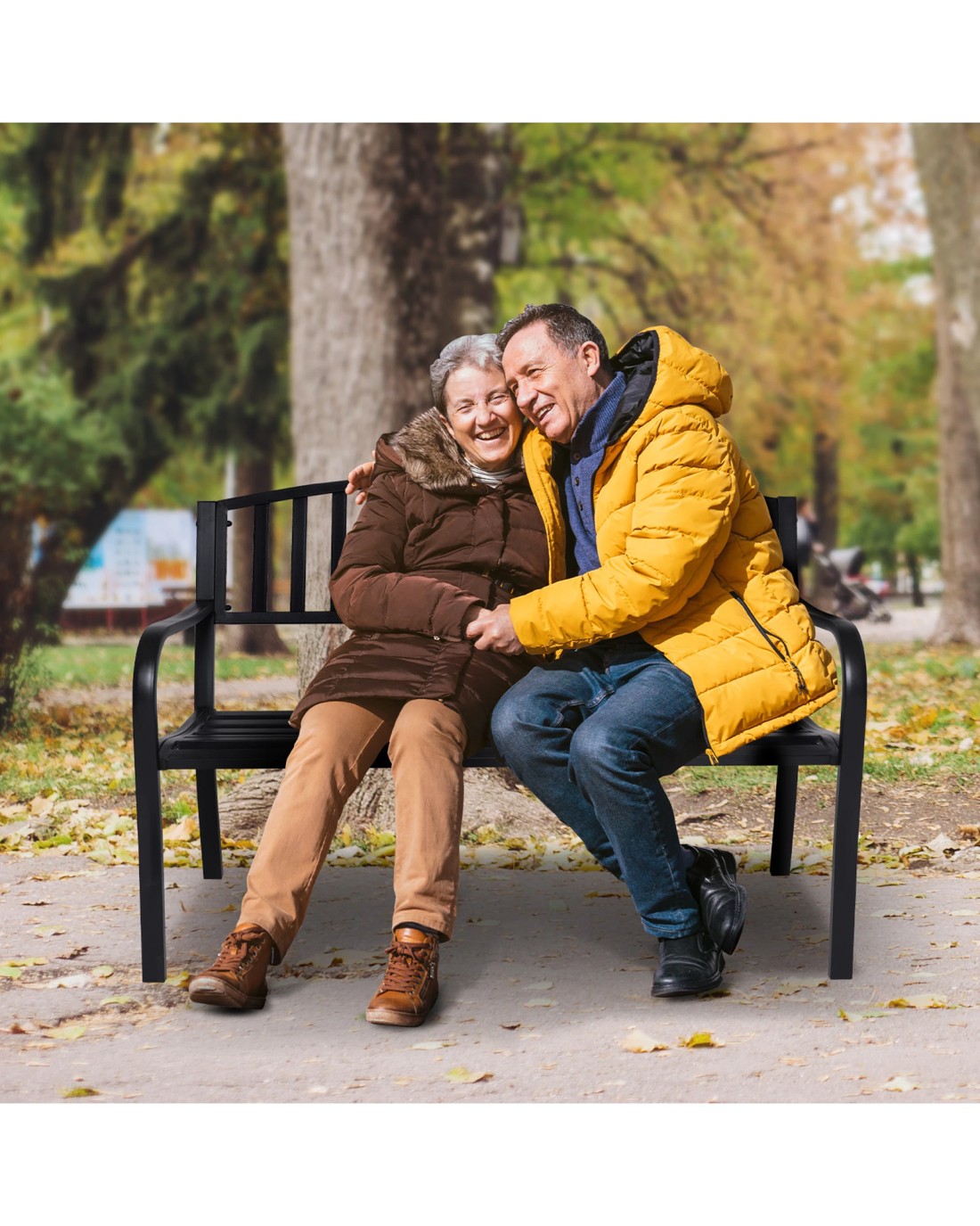 Wallaroo Steel Outdoor 2 to 3 Seater Garden Bench Rust Resistant Cast Iron 300kg Capacity - Black