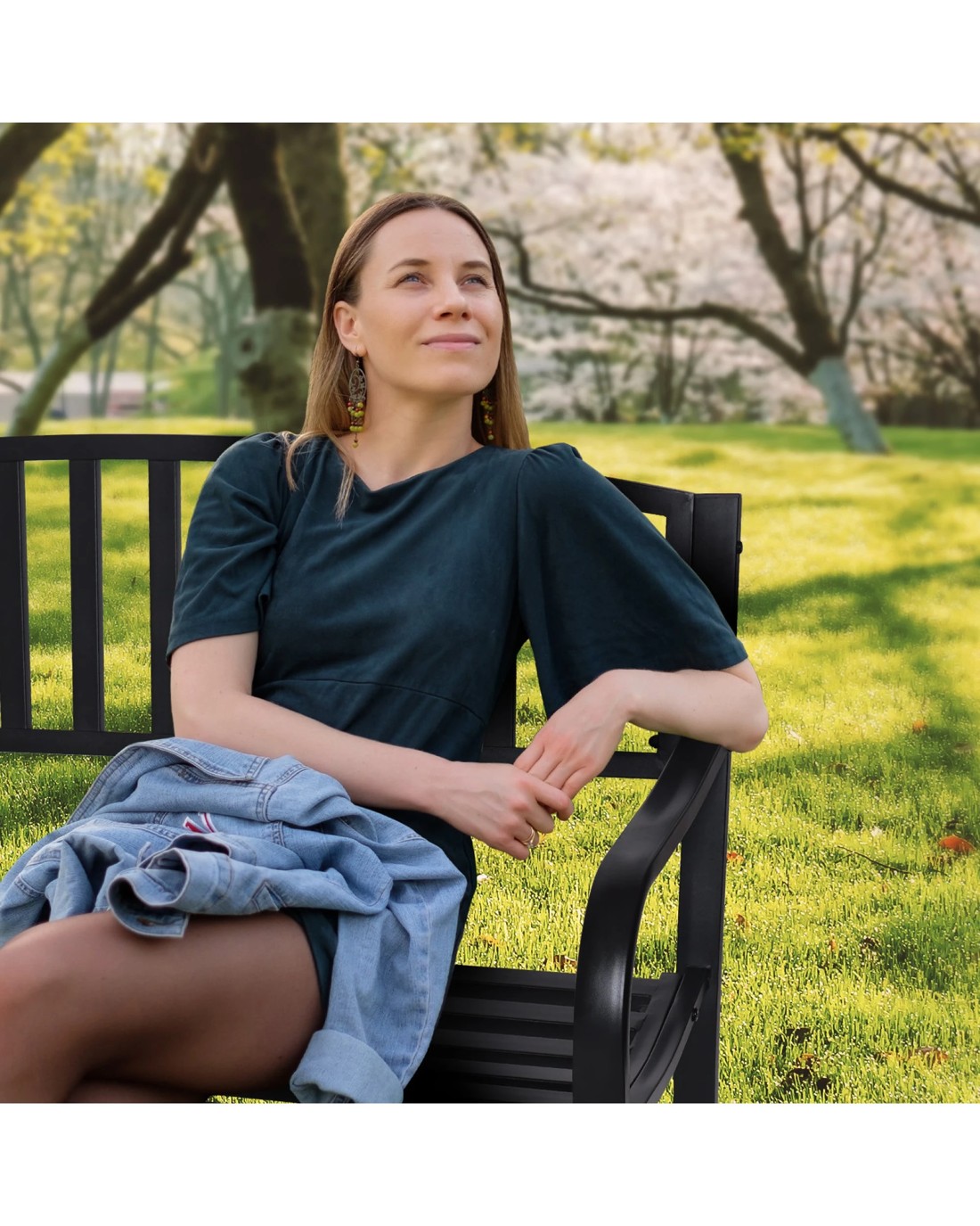 With its powder-coated steel frame and cast iron backrest, this bench is incredibly sturdy and built to withstand harsh weather conditions. It also features a powder-coated finish that adds an extra layer of protection, making it rust and weather-resistant. Additionally, the ergonomic seat ensures maximum comfort, making it the perfect spot to unwind and enjoy some peaceful solitude.
