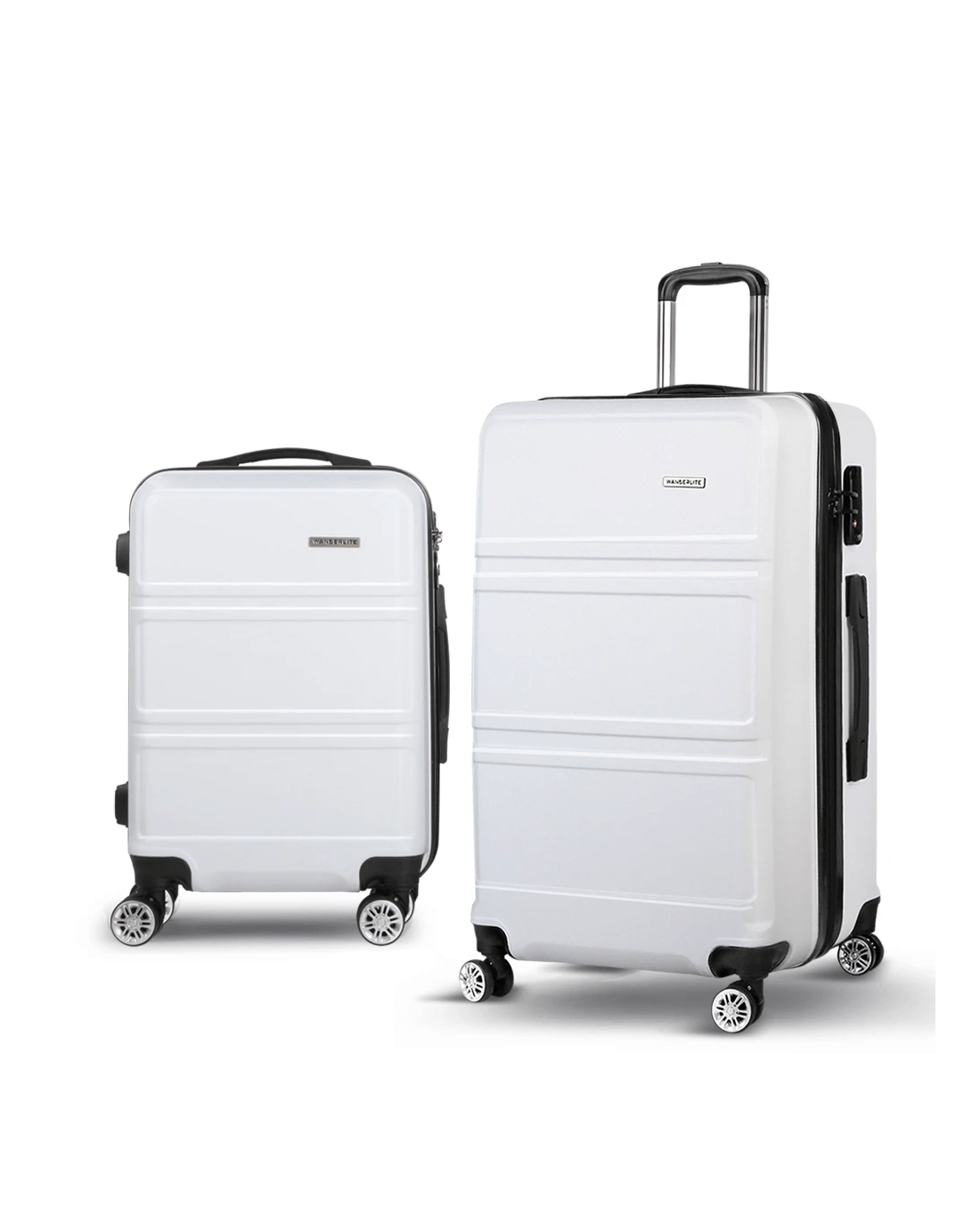 Wanderlite 2pc Luggage Trolley Set Suitcase Travel TSA Carry On Hard Case Lightweight - White
