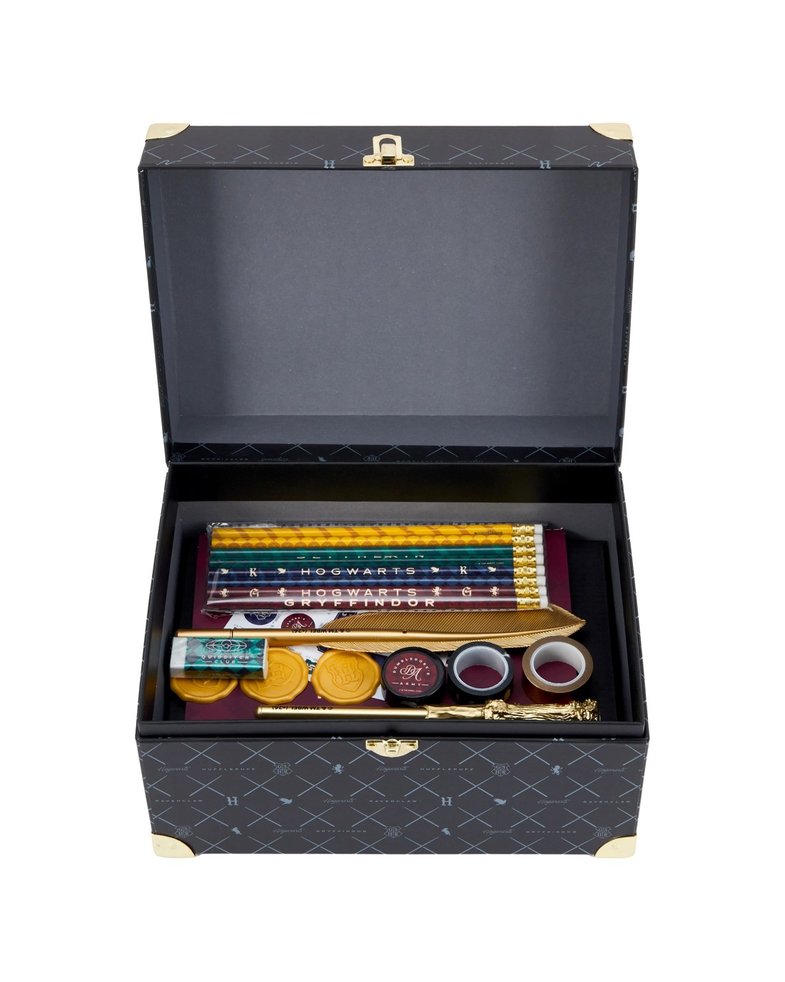 - Includes 1 x journal, 1 x novelty wand pen, 1 x novelty quill pen, 2 x sticker sheets, 3 x wax seal stickers, 1 x sharpener, 2 x washi tape rolls, 1 x eraser and 8 x pencils