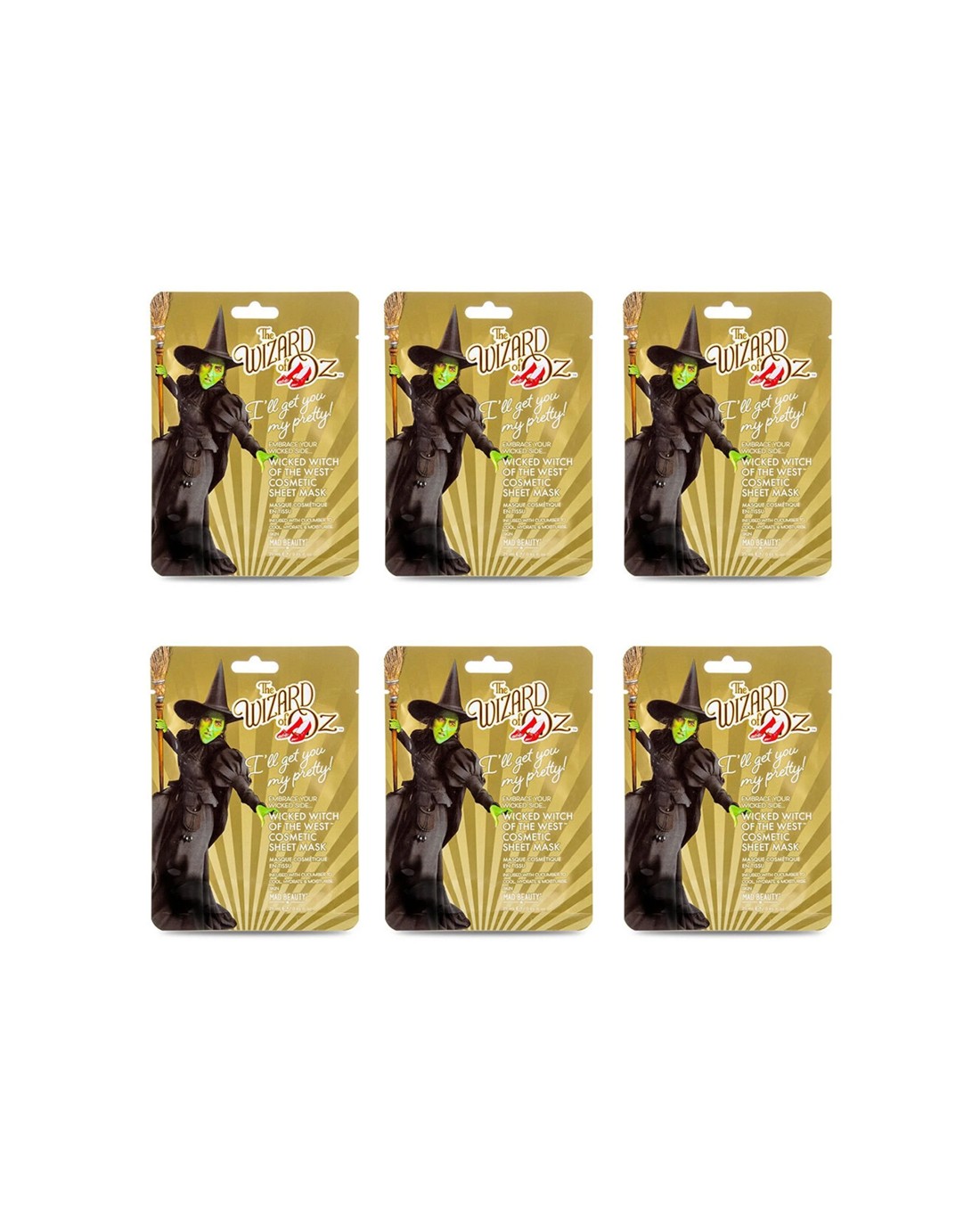 Warner Bros Wizard of Oz Wicked Witch Scented Sheet Mask Cucumber 6PK 25ml - Green