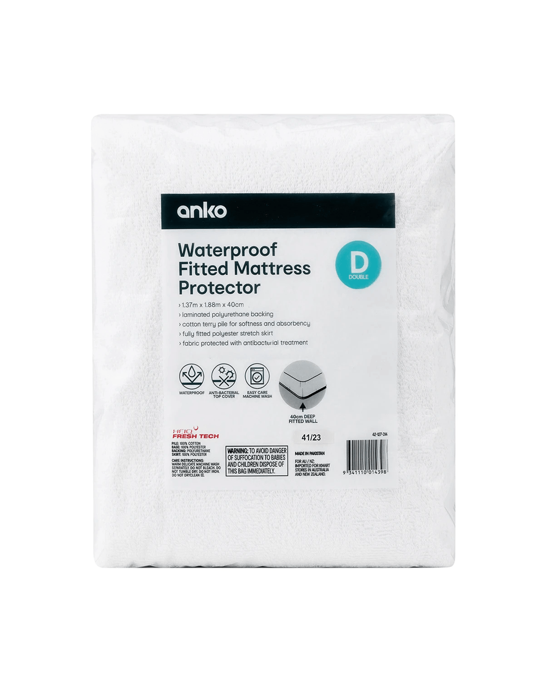 Waterproof Fitted Mattress Protector - Double Bed, White
