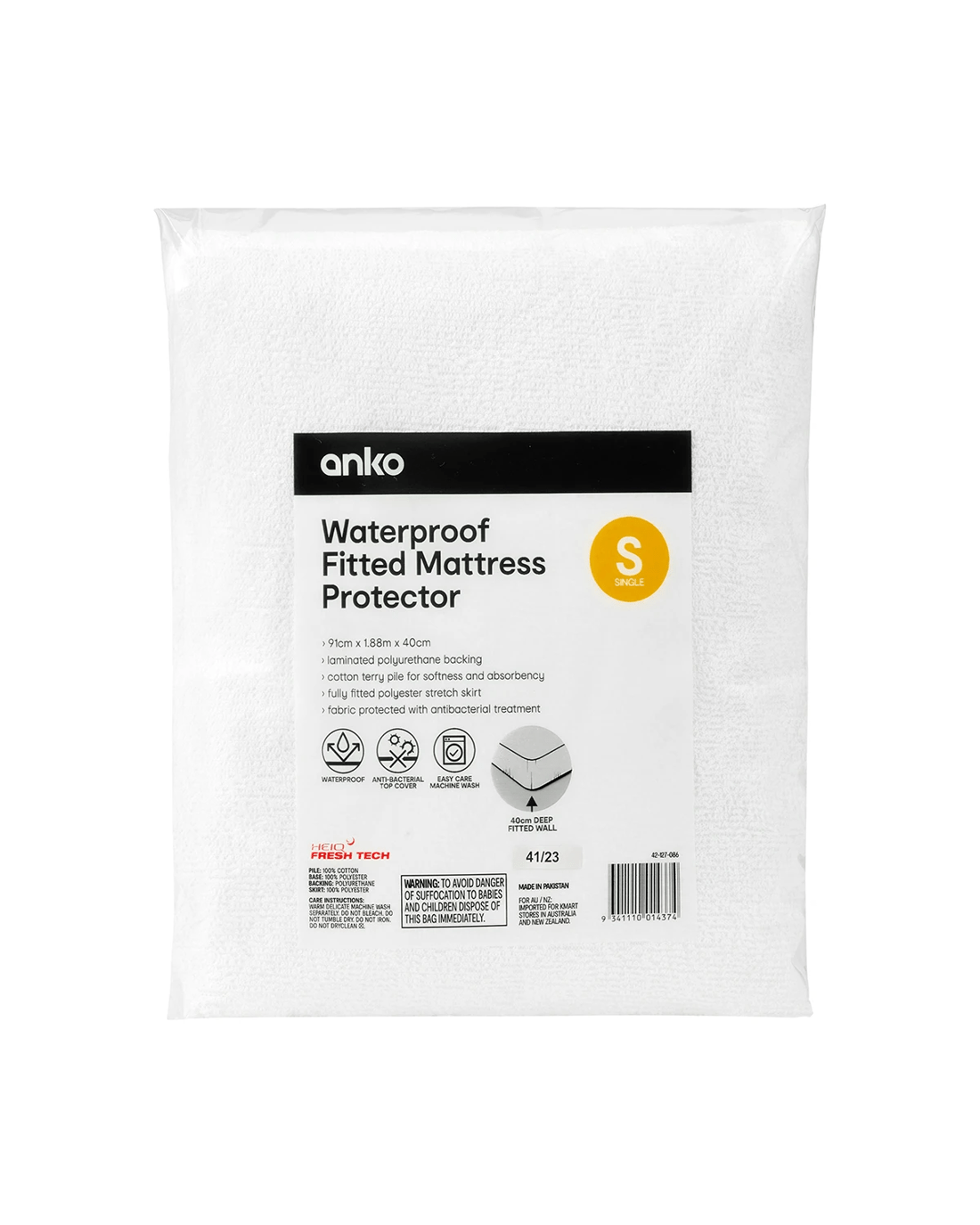 Waterproof Fitted Mattress Protector - Single Bed, White