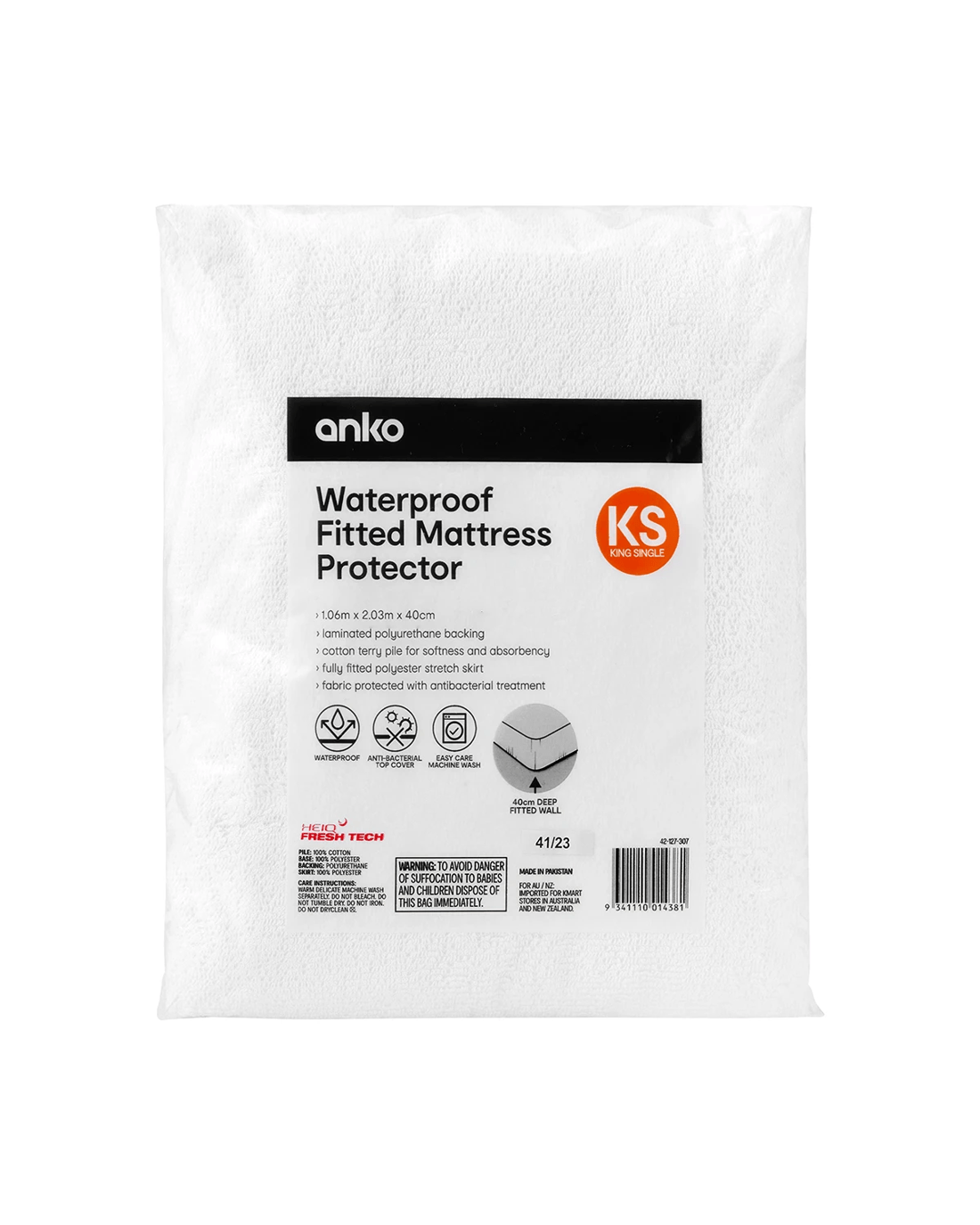 Waterproof Fitted Mattress Protector - King Single Bed, White