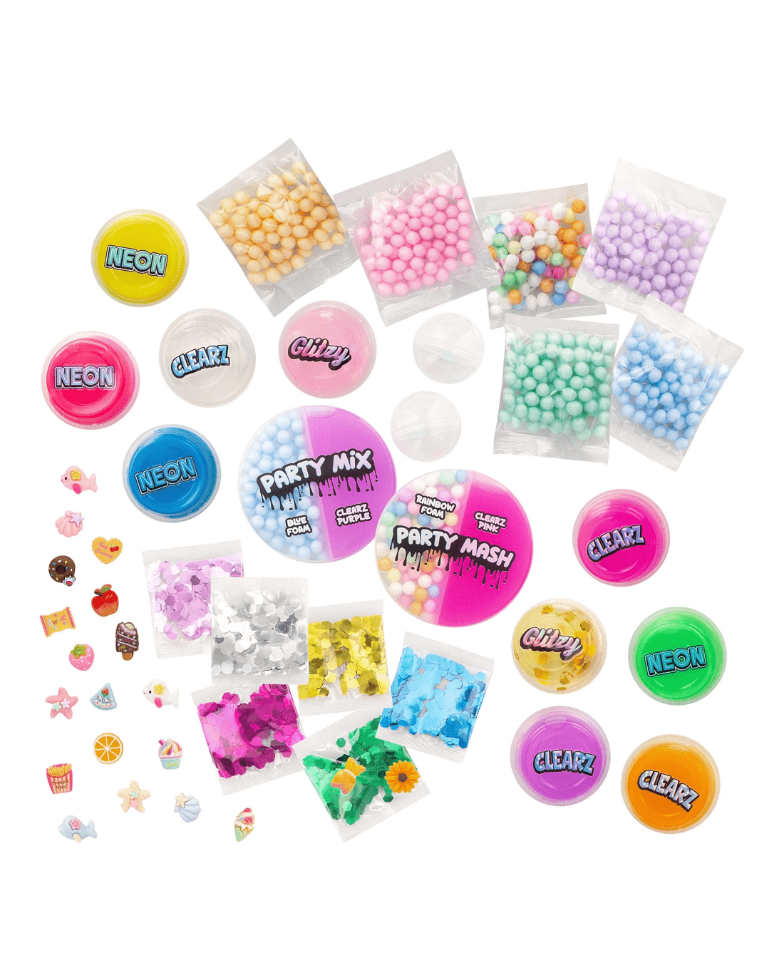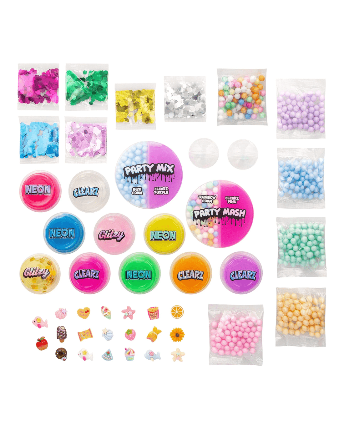 - Includes neon, glitzy and clearz slimes, two mix and mash slimes, and mix-ins