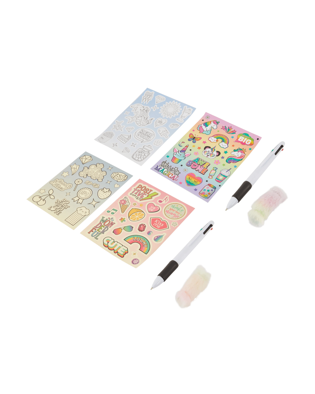 - Includes 1 x journal, 1 x 4-colour pen, a sticker sheet and a colour-in sticker sheet