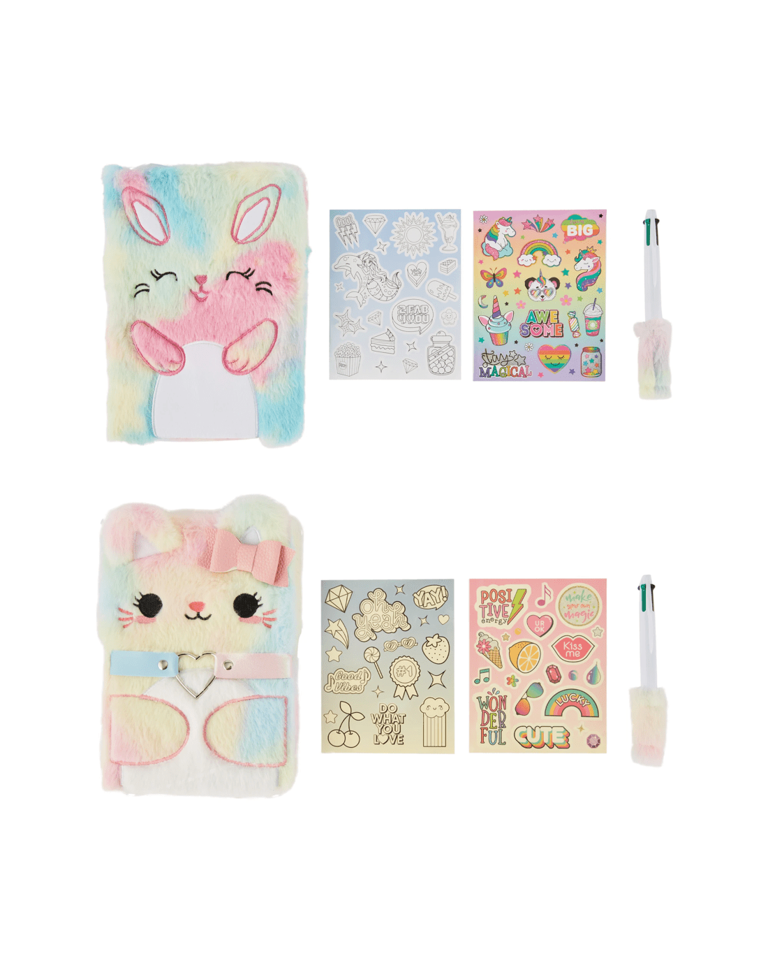 The adorable plush notebook features an animal face on the front cover, with soft, colourful faux fur and ears. Open it up and you'll find plenty of pages to jot down your notes, ideas, lists, drawings and more. The set comes with a four-colour pen and a sheet of cute stickers to add to your pages. There's also a colour-in sticker sheet for you to personalise with your favourite colours.