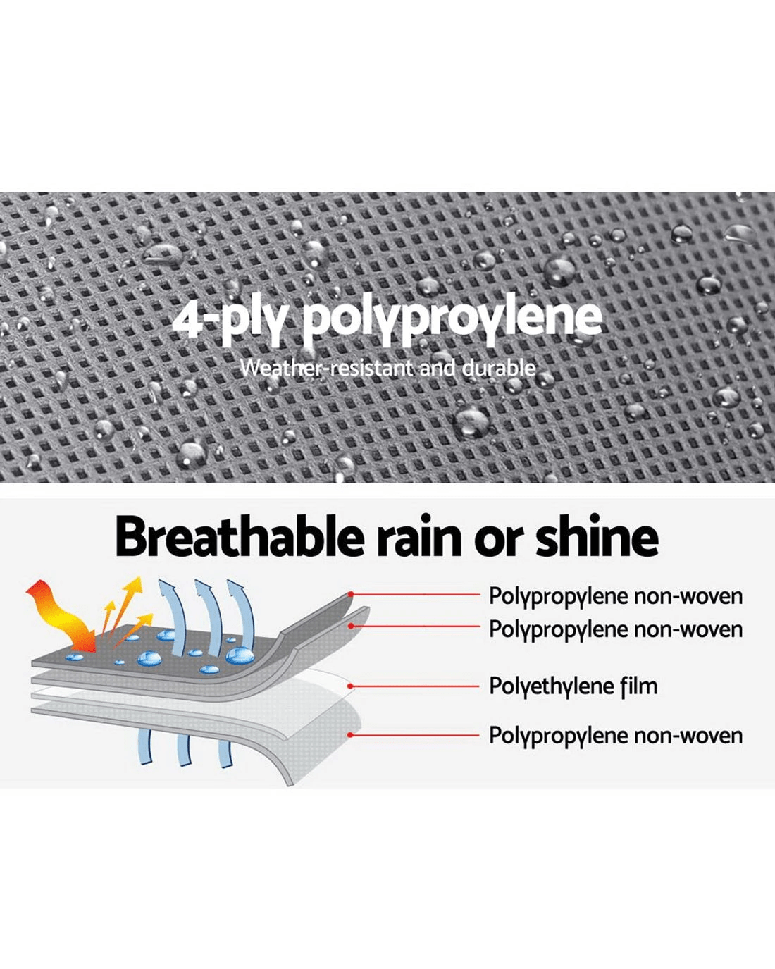 Beware of cheap polyester alternatives! This is a heavy-duty caravan cover made of top-grade genuine 4-ply non-woven polypropylene. Now that we've made that clear, you can now discover why our caravan cover is supremely far superior.