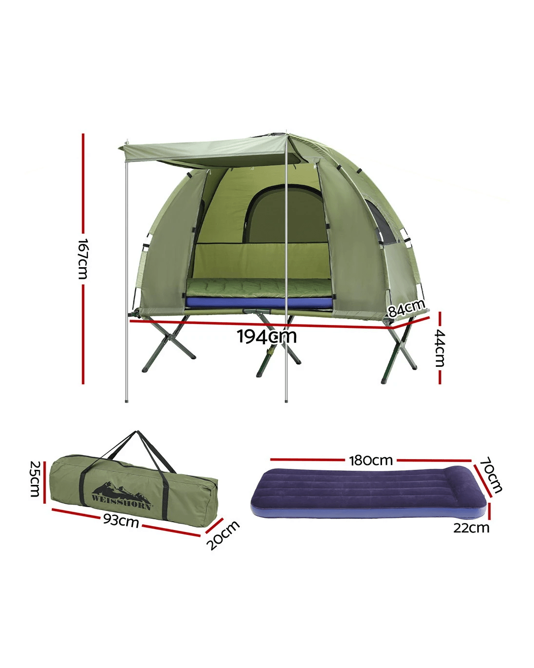 Weisshorn 5-in-1 Camping Tent Cot 1-person Air Mattress Camping Bed - Multi