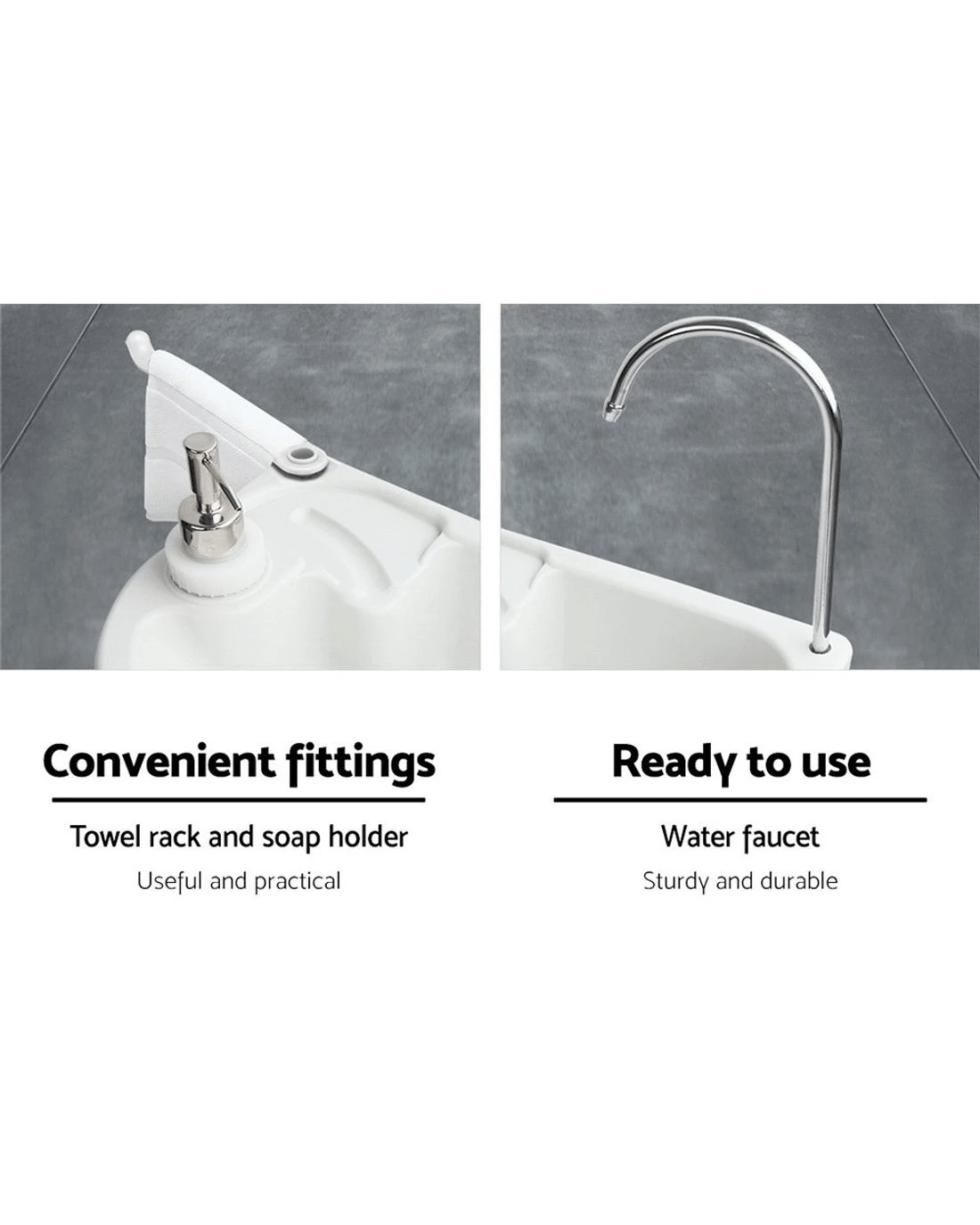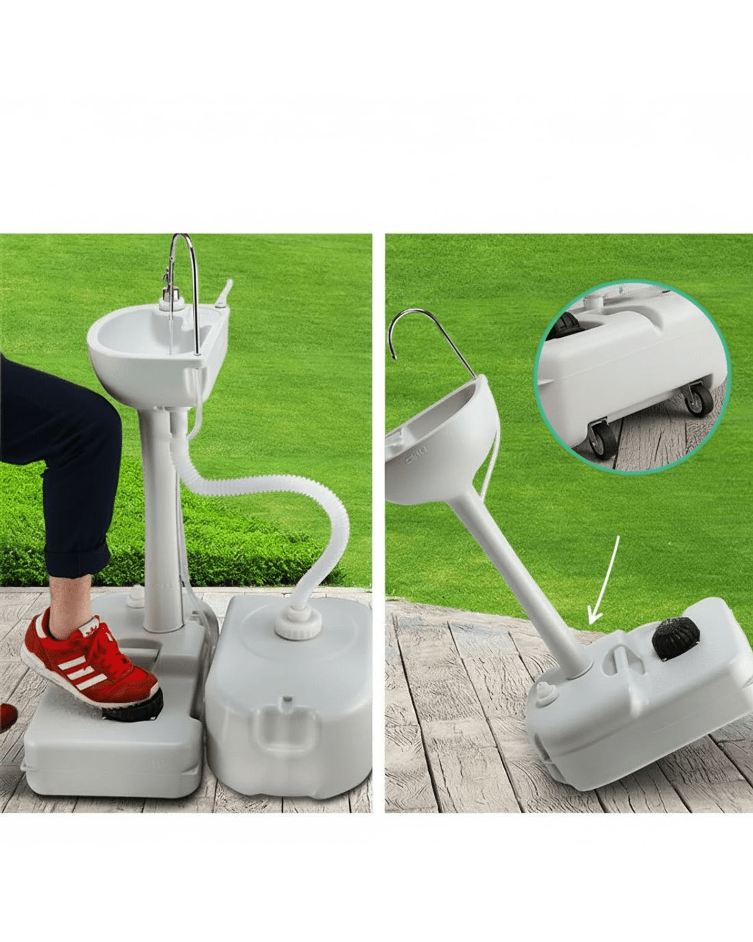 Designed to make camping life more enjoyable and convenient, the Portable Handwash Stand comes fully fitted with a hands-free faucet, a holder for soap and handwash lotion, towel rack and a 19-litre water tank. Getting the water flowing is just a simple task of stepping on the foot-operated pump. And to make things easier for you, a 24-litre Waste Tank with connecting hose is included for hassle-free collection of waste water.