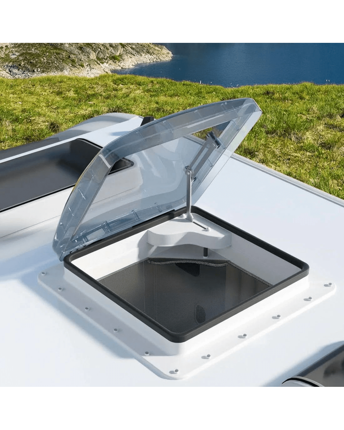 Need a breath of fresh air while travelling? The Weisshorn Caravan Vent is designed to enhance fresh air circulation in your caravan with ease. With its 50 degree wide-angle opening, it allows for maximum airflow, ensuring a comfortable and refreshing environment inside. Whether it's summer or winter, this vent is suitable for use in all seasons and weather conditions. One of the key features of our caravan vent is its low-noise operation, ensuring a peaceful and quiet atmosphere inside your caravan. Additionally, it effectively prevents insects from entering thanks to the stainless-steel flyscreen, providing you with a bug-free space to relax and enjoy your time. Furthermore, this vent is compatible with various roof thicknesses, making it versatile and easy to install. Upgrade your caravan with our caravan vent and experience improved air circulation and comfort like never before with the Weisshorn Caravan Vent.