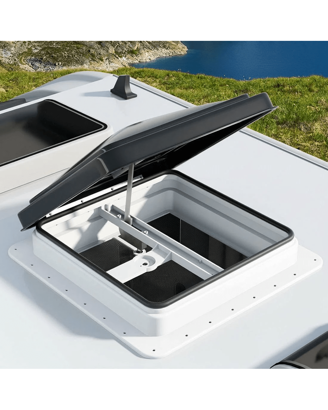 Need a breath of fresh air while travelling? The Weisshorn Caravan Vent is designed to enhance fresh air circulation in your caravan with ease. With its 45° wide-angle opening, it allows for maximum airflow, ensuring a comfortable and refreshing environment inside. Whether it's summer or winter, this vent is suitable for use in all seasons and weather conditions. One of the key features of our caravan vent is its low-noise operation, ensuring a peaceful and quiet atmosphere inside your caravan. Additionally, it effectively prevents insects from entering thanks to the stainless-steel flyscreen, providing you with a bug-free space to relax and enjoy your time. Furthermore, this vent is compatible with various roof thicknesses, making it versatile and easy to install. Upgrade your caravan with our caravan vent and experience improved air circulation and comfort like never before with the Weisshorn Caravan Vent.
