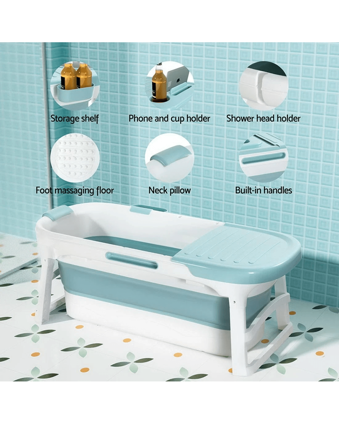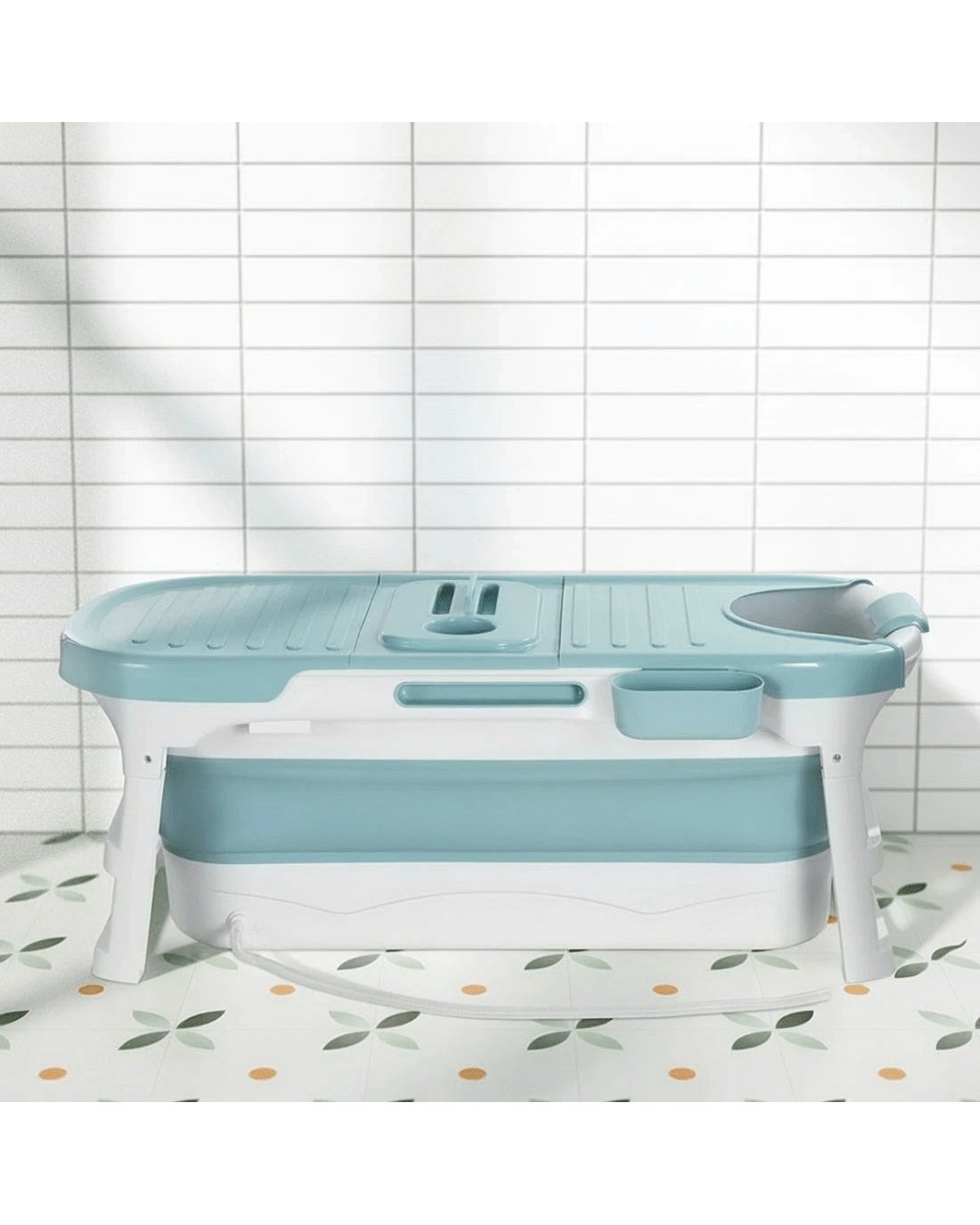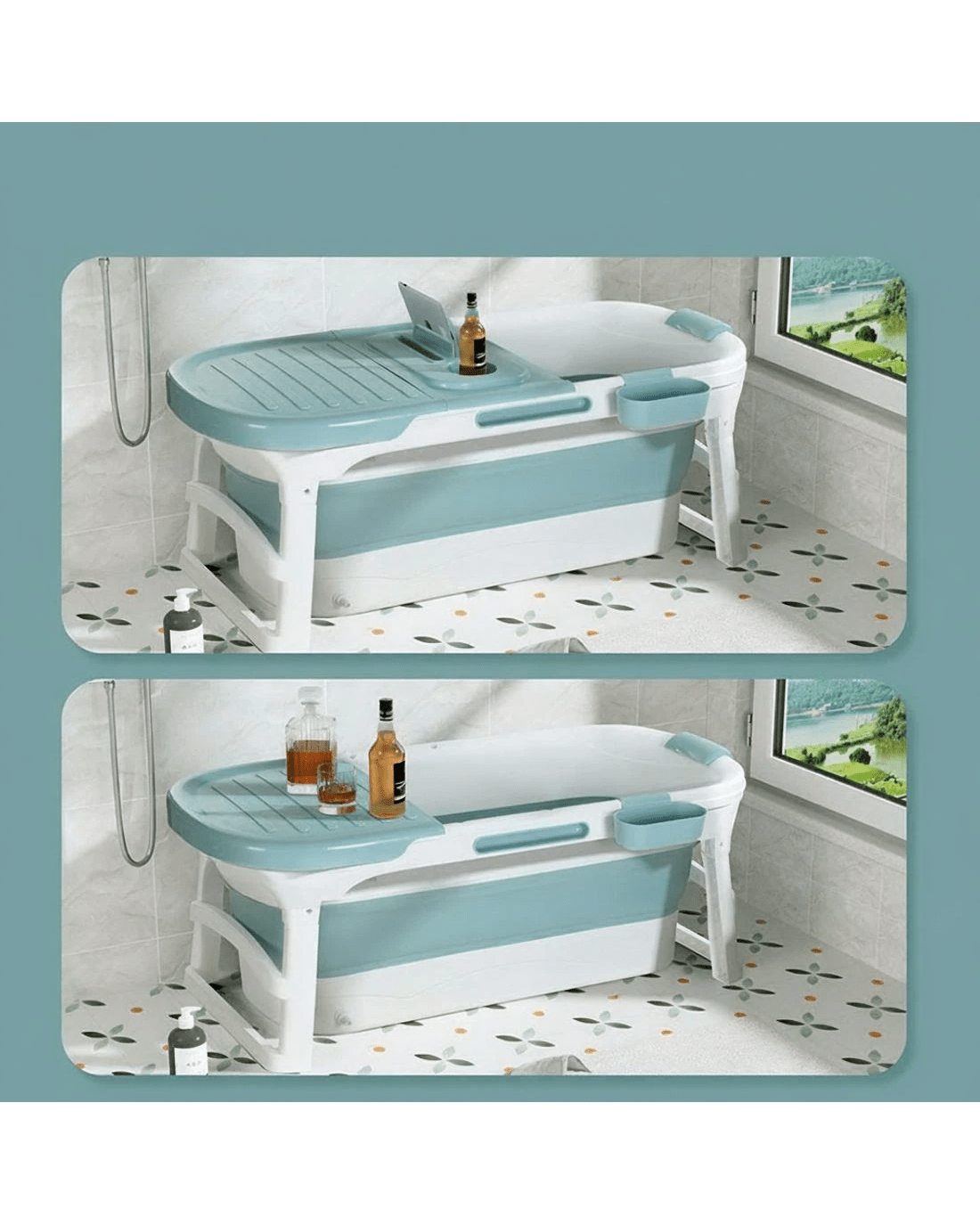Our foldable bathtub is made with high-quality PP+TPR material and boasts an extra-large capacity, perfect for relaxing after a long day. Featuring a thickened bracket support and foot massage floor, this tub provides comfort and stability. The separate cover plate and neck pillow add to your luxurious experience. Plus, with a convenient storage shelf, phone and cup holder, shower head holder, and built-in handles, it's the perfect portable bathtub. Ideal for indoor and outdoor use, the drainpipe ensures easy clean-up.