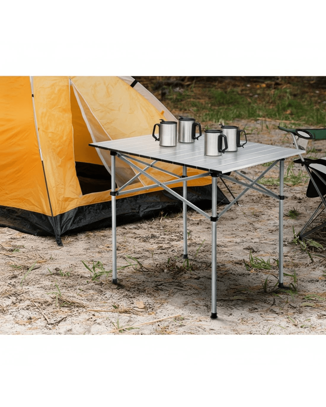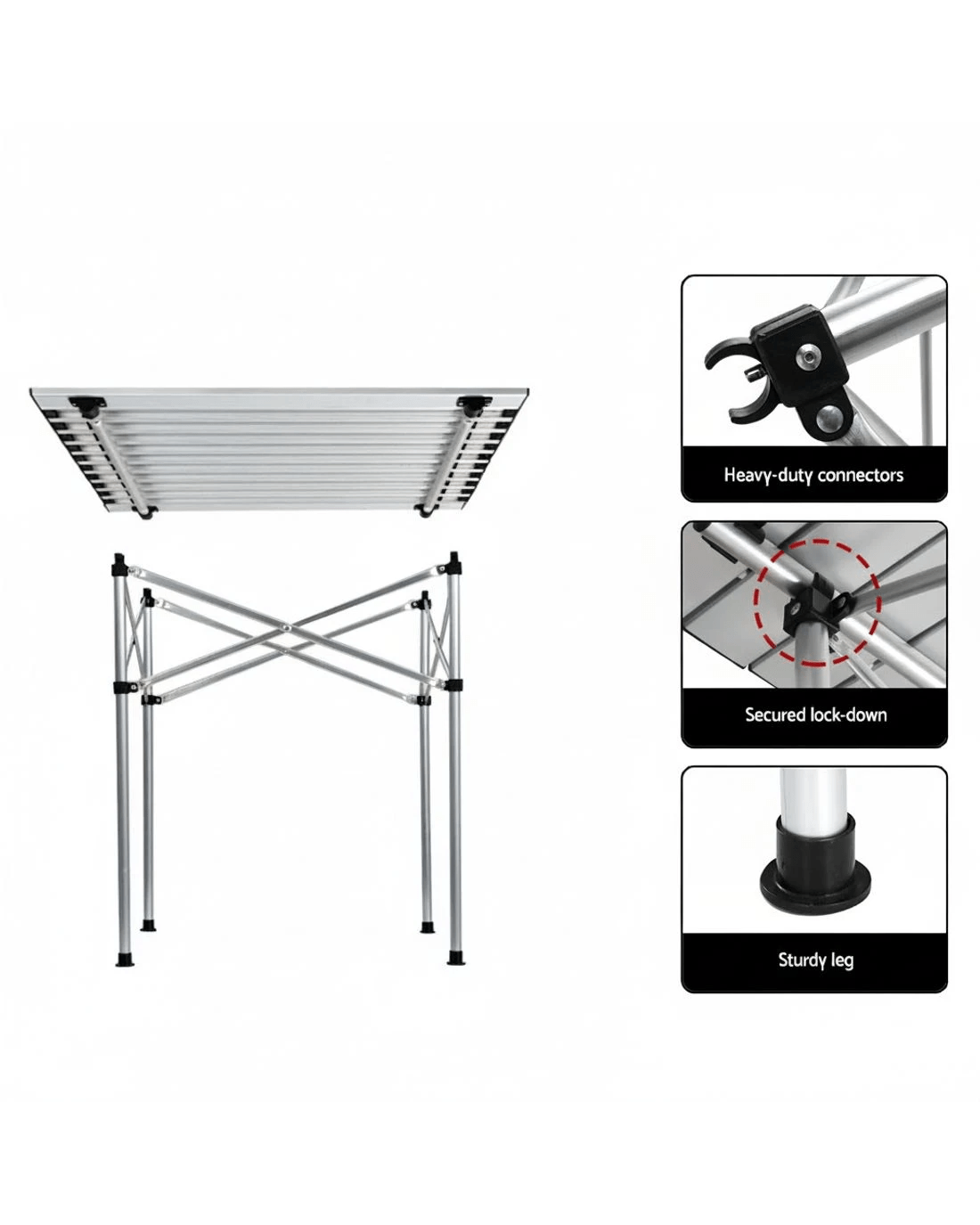 Sold by Aisle SixWeisshorn Folding Camping Table 70CM Roll Up Outdoor Picnic BBQ Aluminium Desk - Silver