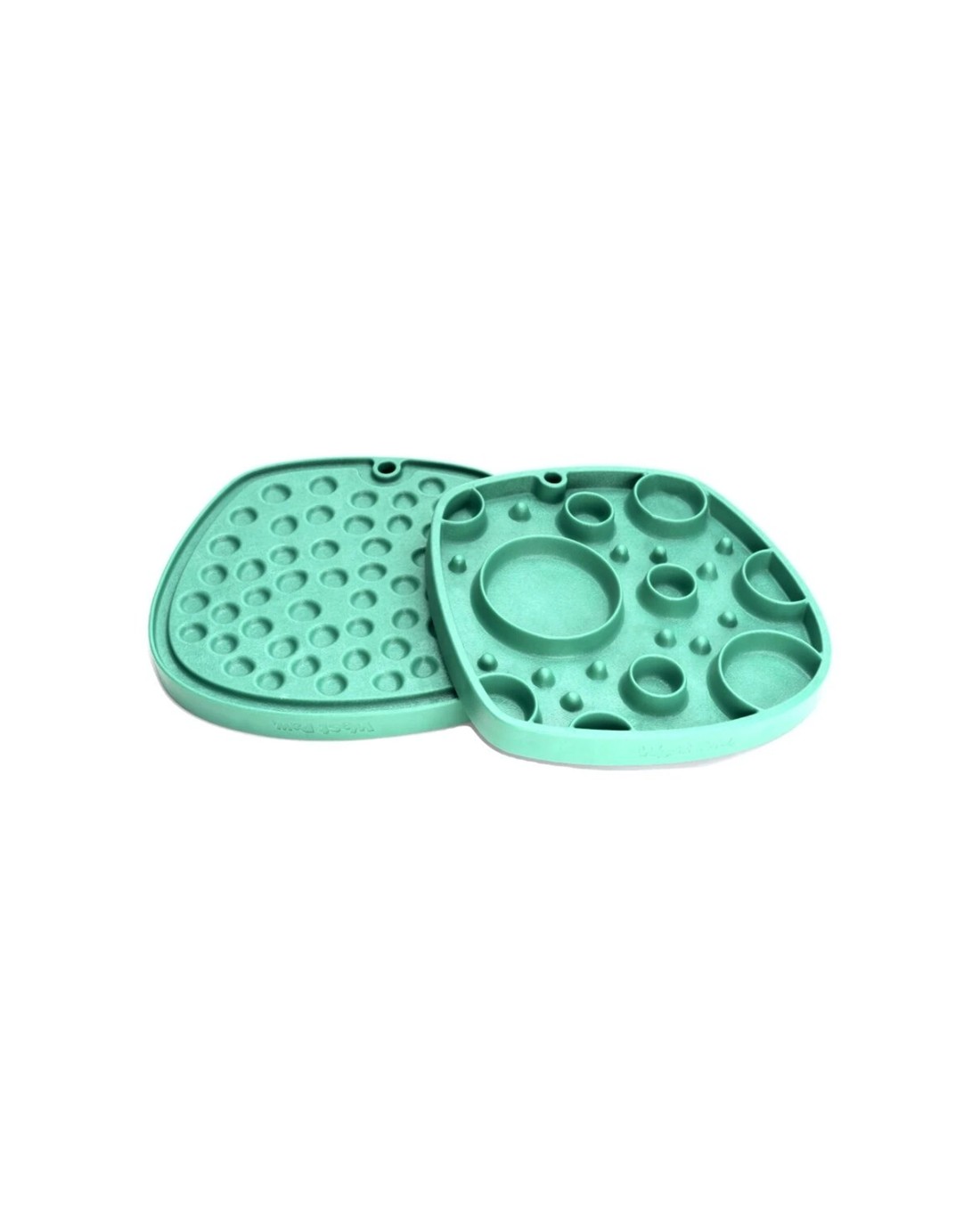 The Feast Mat features two functional surfaces: a Slow Feeder side that encourages healthy food exploration and a Lick Mat side designed to help reduce stress and anxiety. Its non-slip material ensures stability during use, while a hanging hole allows for convenient storage. Suitable for use on West Paw Feeding Mats, it helps minimise mess and keep feeding areas tidy. Made in the USA from Seaflex and Zogoflex materials, this product is safe, non-toxic, free from latex, phthalates, and silicone. It is also recyclable through the Join the Loop program, supporting environmental sustainability.