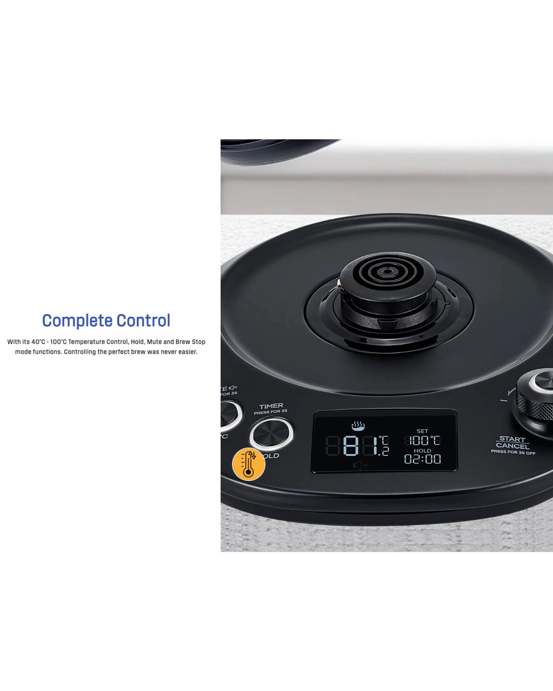 - Perfect temp every time: Variable temperature settings from 40°–100°C for optimal tea or coffee extraction.
