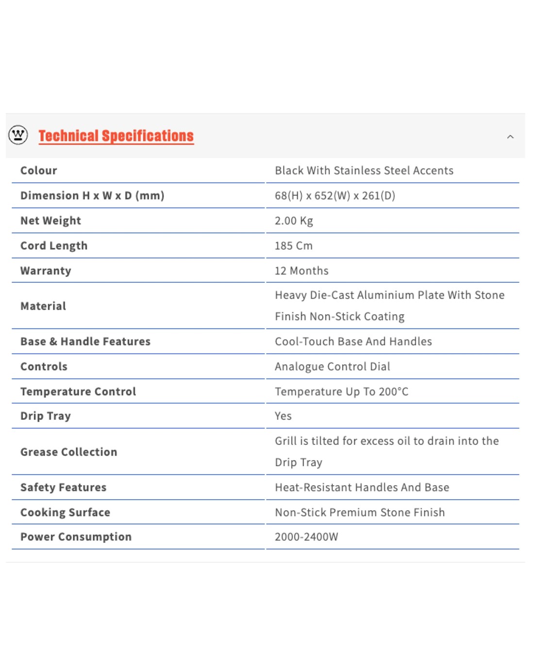 Elevate your home cooking game with the Westinghouse Non-Stick Flat Electric Grill – your new go-to for quick, tasty meals without the mess. Whether it’s a family breakfast fry-up or weeknight steak sizzle, this sleek unit delivers top performance without fuss. Compact in size but big on results, it’s ideal for benchtop cooking, balconies, and anywhere you’d rather not wrestle with a bulky BBQ. The generous die-cast aluminium grill plate heats evenly and holds its temp, while the stone-finish non-stick coating ensures your food slides off with ease – no scrubbing required. Plus, the removable drip tray makes clean-up a breeze. With an easy-to-use control dial and heat settings up to 200°C, you’ll be in full control of every sear, flip and serve.
