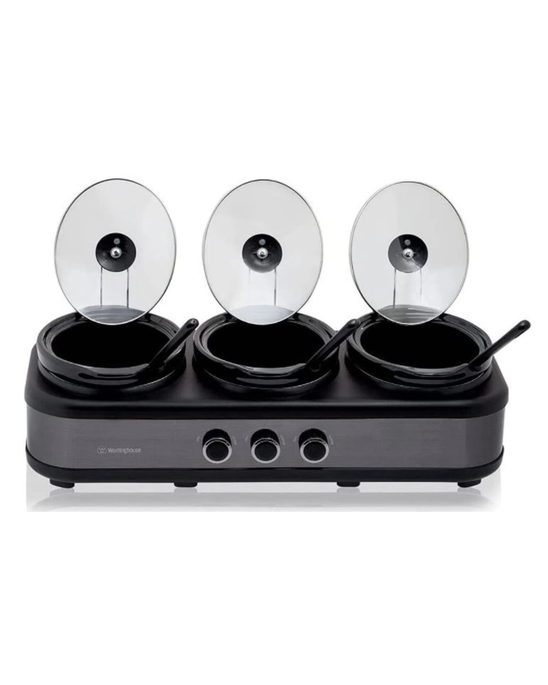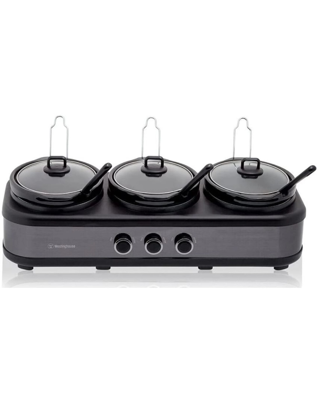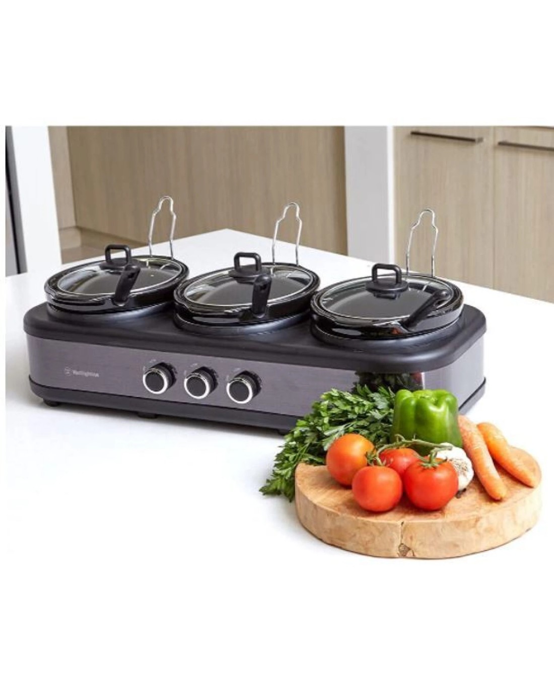 Featuring multiple pots and cooking functions, the Westinghouse 3 Pot Slow Cooker lets you prepare different dishes at the same time and at their suitable heating levels for added variety during weekend lunches, family dinners, and other events.