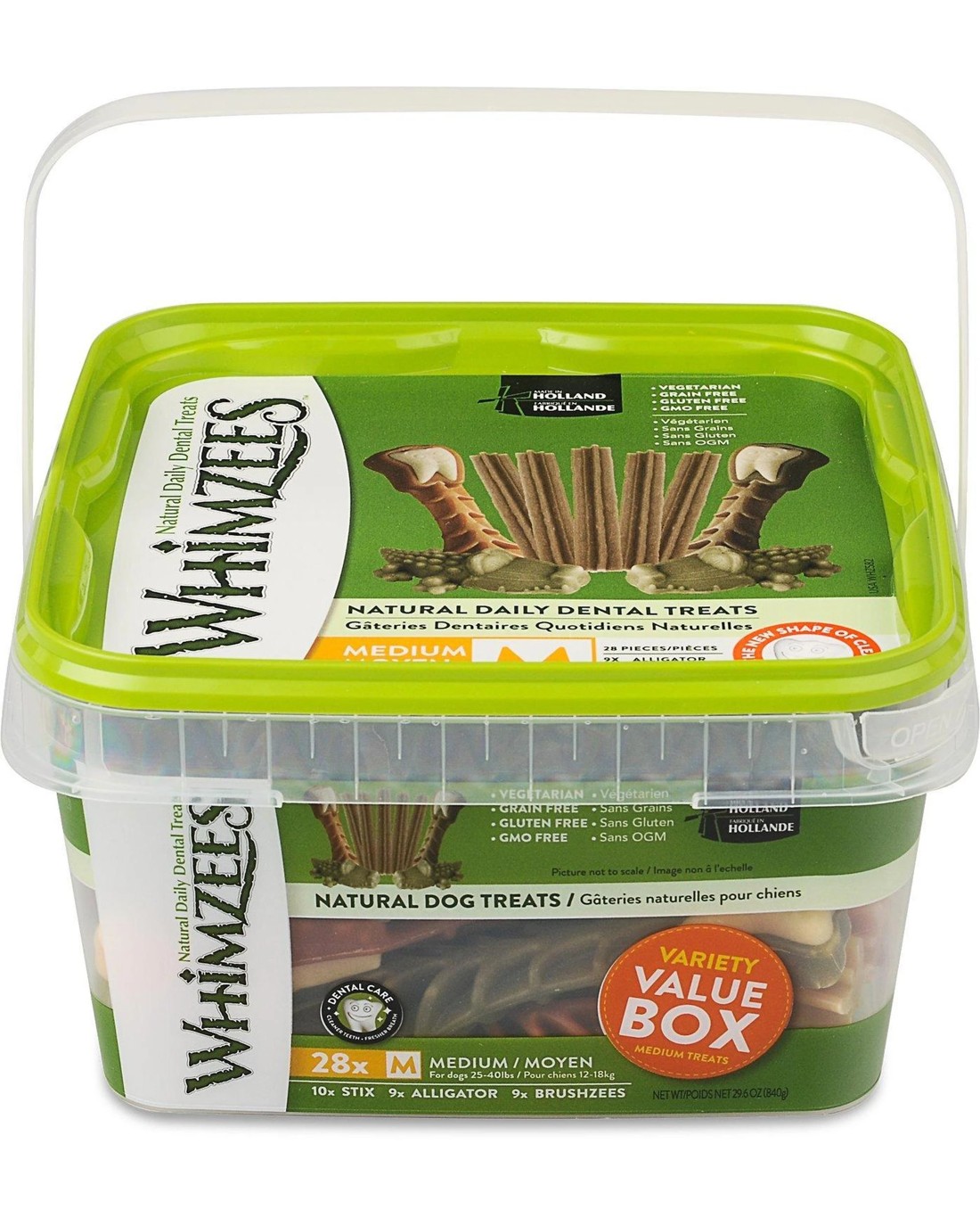 Whimzees Variety Value Box Dental Care Dog Treat Medium 28 Pack