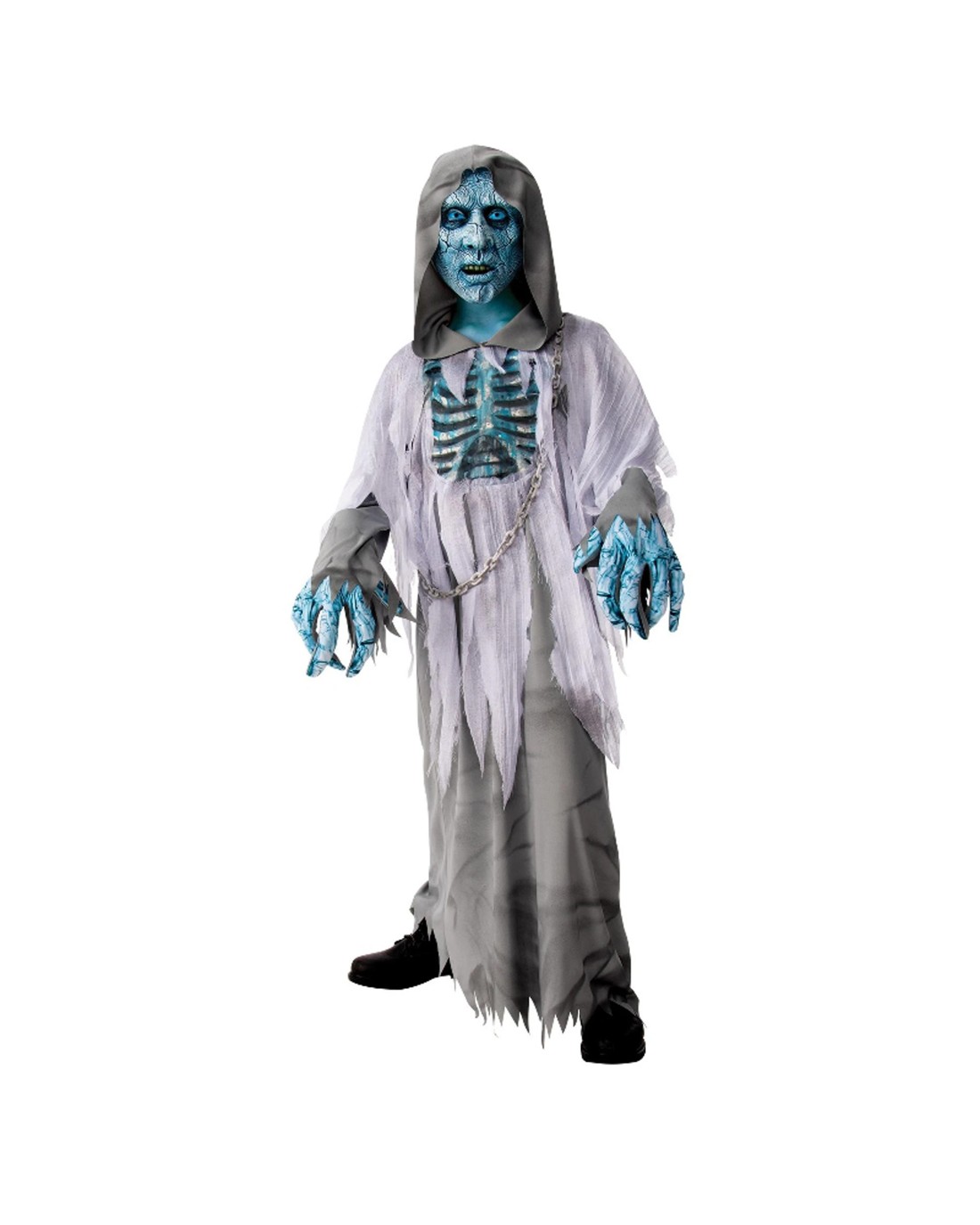 White Demon Hooded Robe Child Costume Size L 8-10 Years