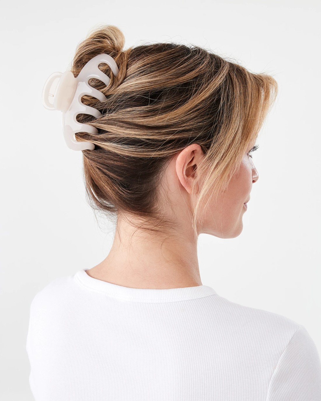 This White Jelly Claw Clip boasts a sleek and translucent finish in a soft white shade. Crafted to securely hold hair in place, it offers both practicality and a touch of understated elegance, making it perfect for elevating everyday hairstyles with minimal effort.