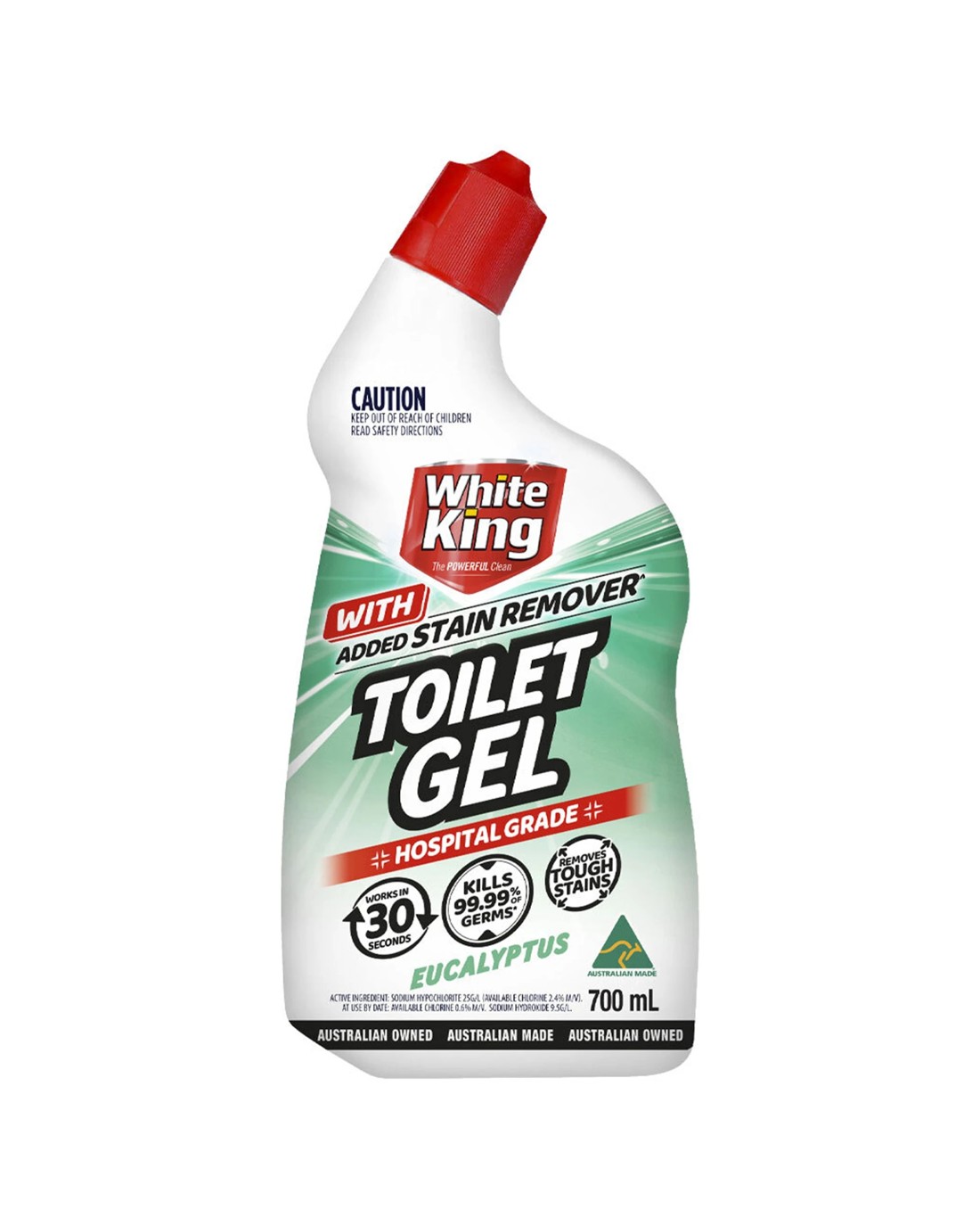 White King 6PK Toilet Gel With Stain Remover 700ml Hospital Grade Eucalyptus - Multi