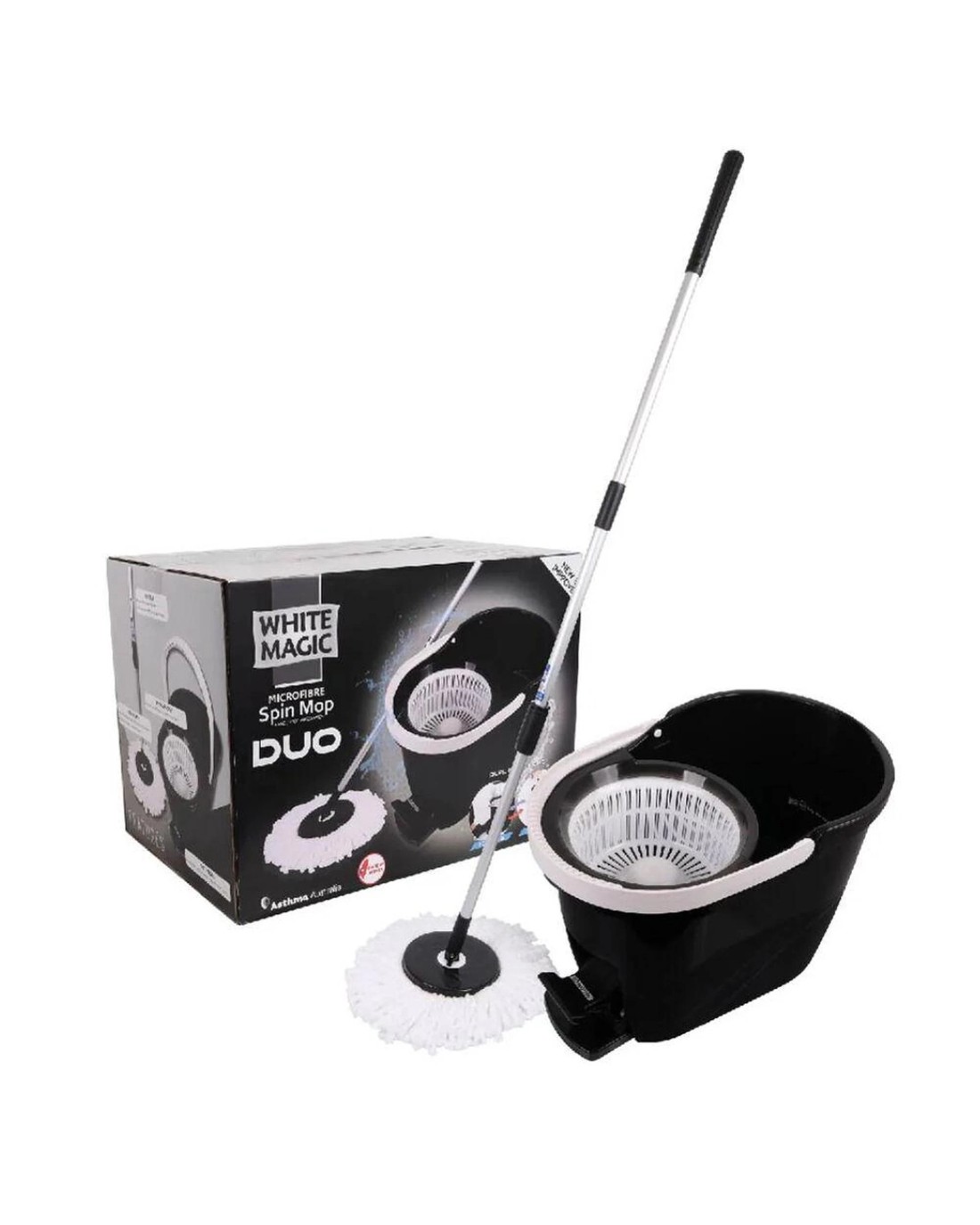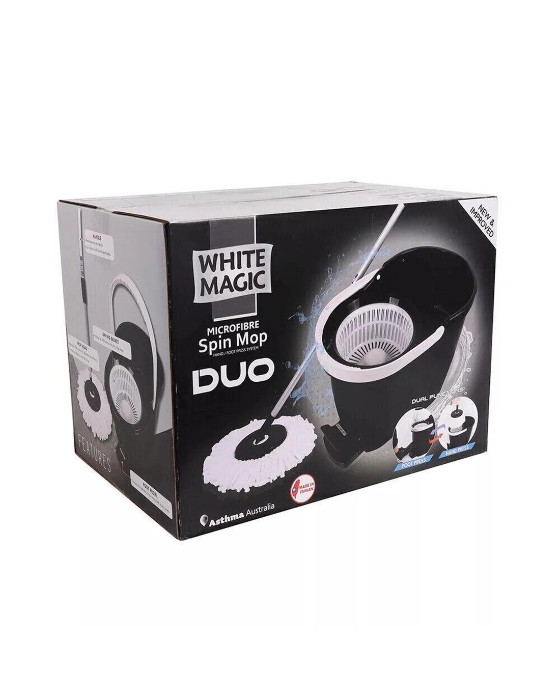 The White Magic Spin Mop Duo is a smart, easy-to-use cleaning solution designed for all hard floor surfaces. Featuring both hand and foot press functions, this dual-action system gives you precise control over mop dampness for a more efficient clean.