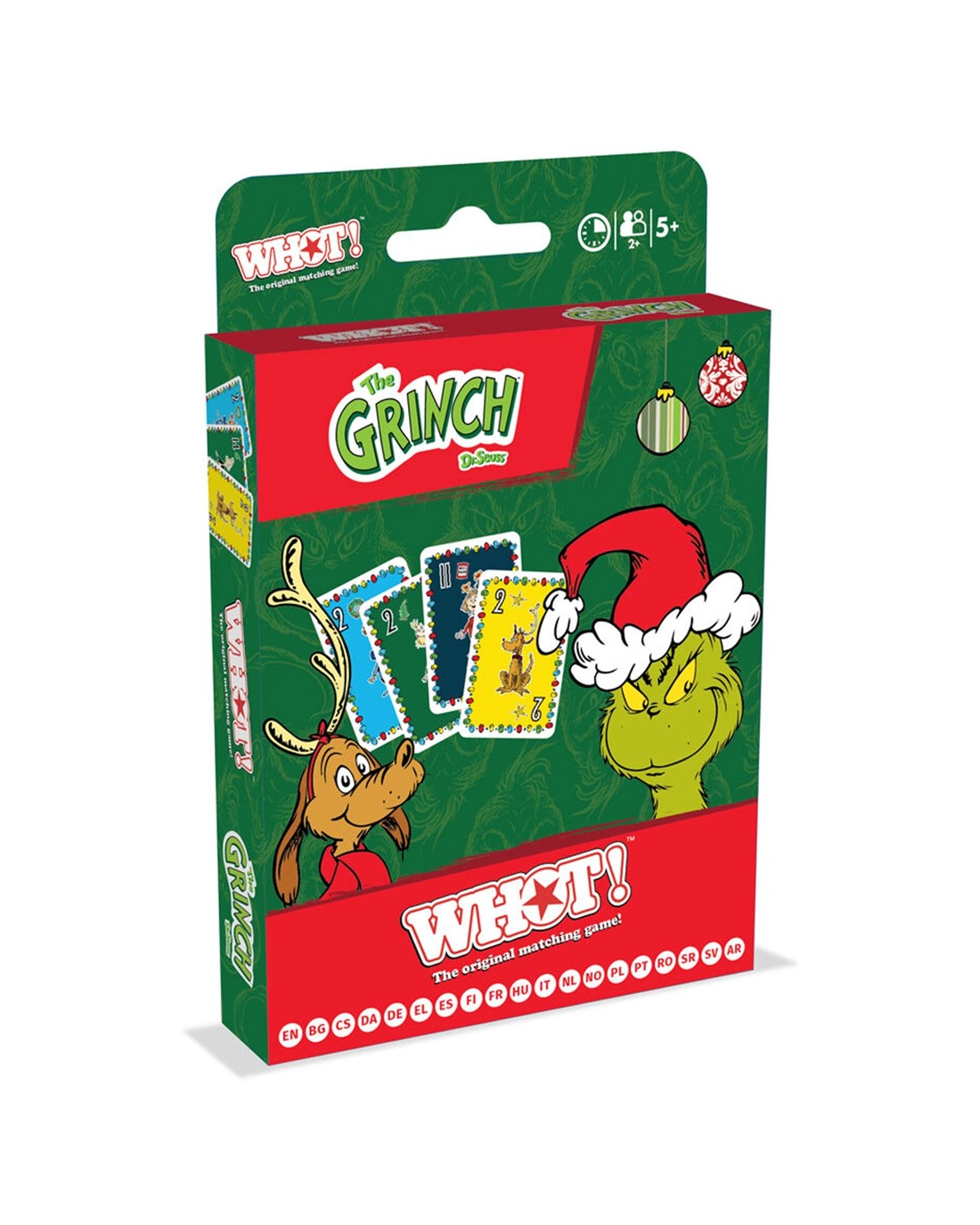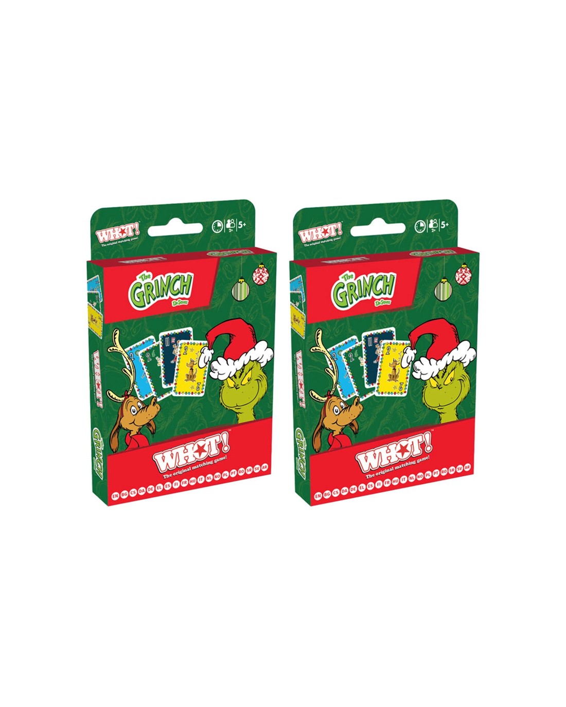 The WHOT! brand presents the 2PK The Grinch Edition Family and Kids Fast Paced Card Game, designed for children aged 5 and above. This engaging game brings the beloved characters from Dr. Seuss's The Grinch to life, offering hours of fun for the whole family. Perfect for family gatherings, travel, or casual game nights, it combines quick thinking with strategic play to keep players entertained.