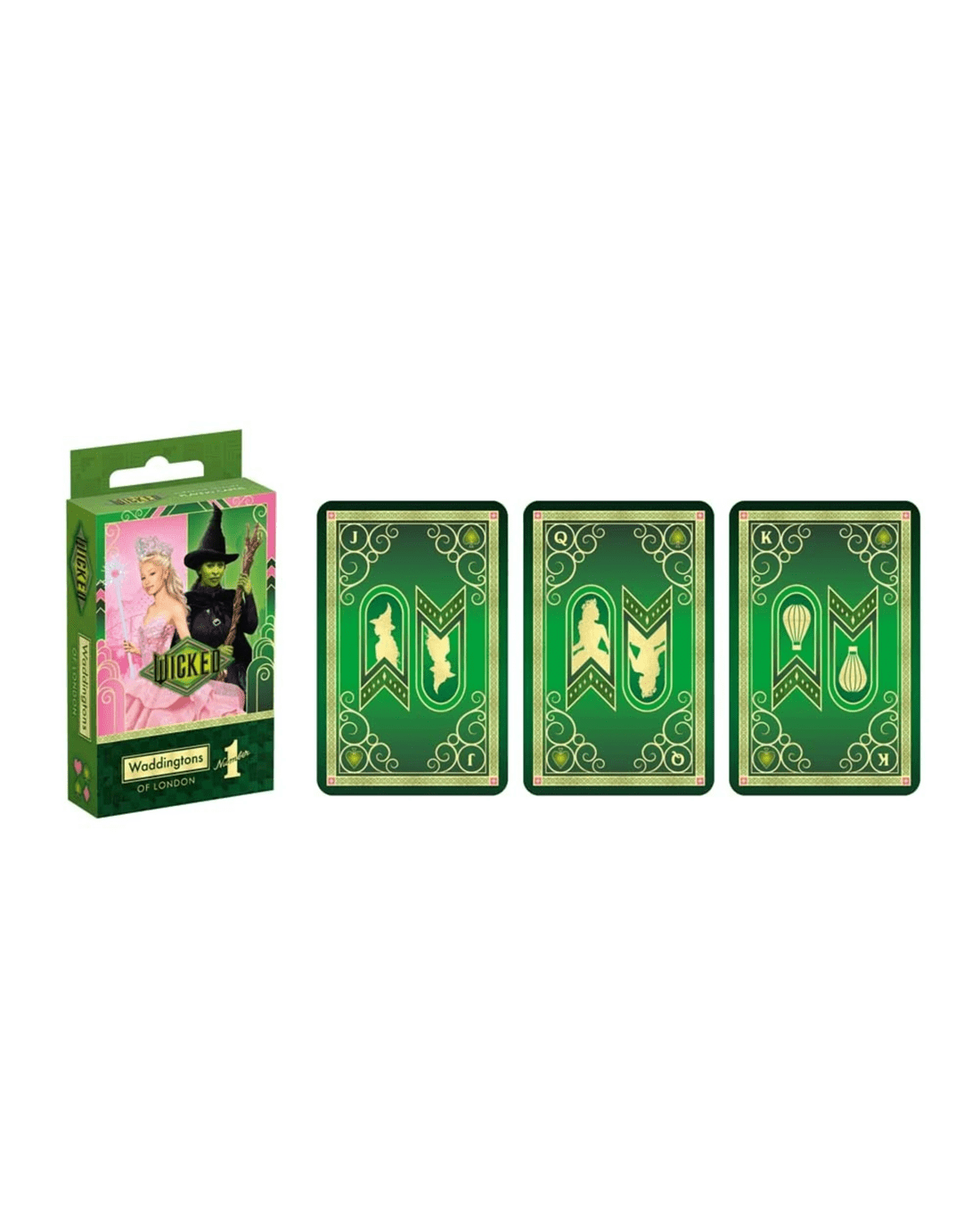 Each card is infused with enchanting design details and rich colours, capturing the essence of Elphaba, Glinda, and the fantastical world they inhabit. Whether for game night or display, these playing cards bring theatrical charm and wicked whimsy to every hand.