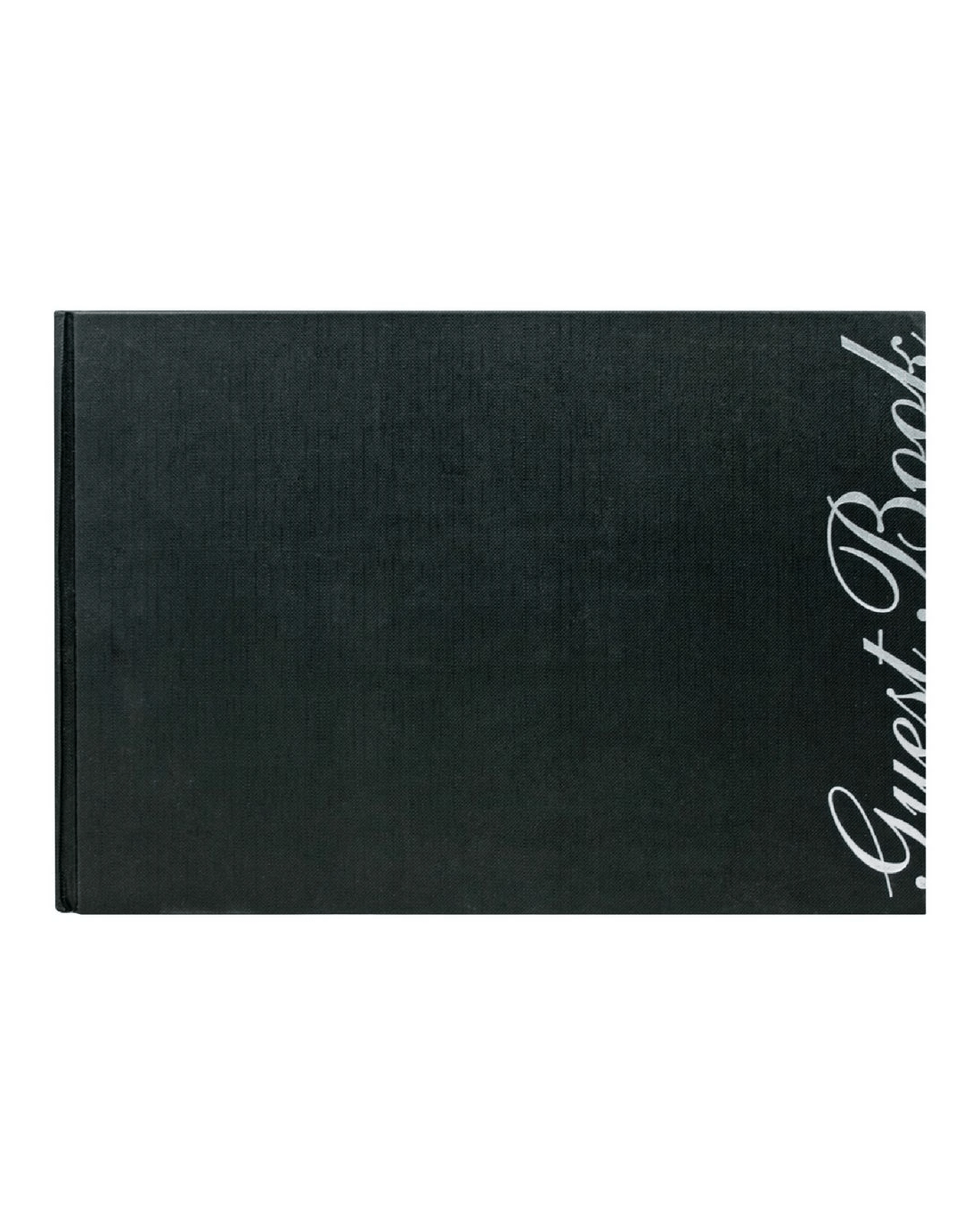 - This book has a stylish black hard cover with silver writing to add a touch of elegance to your reception or gathering area.