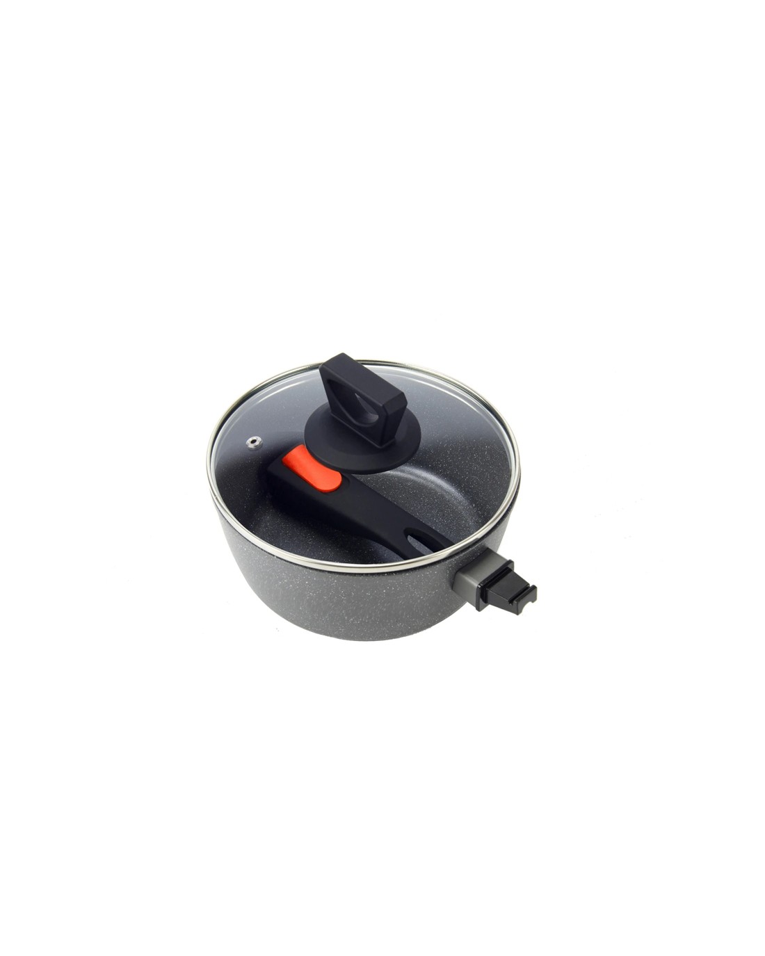 This compact saucepan features a snap-on handle for secure grip and easy storage, along with a heat-resistant glass lid that allows you to monitor your cooking without lifting the lid. Its 1.5 litre capacity is perfect for preparing small portions on the go.