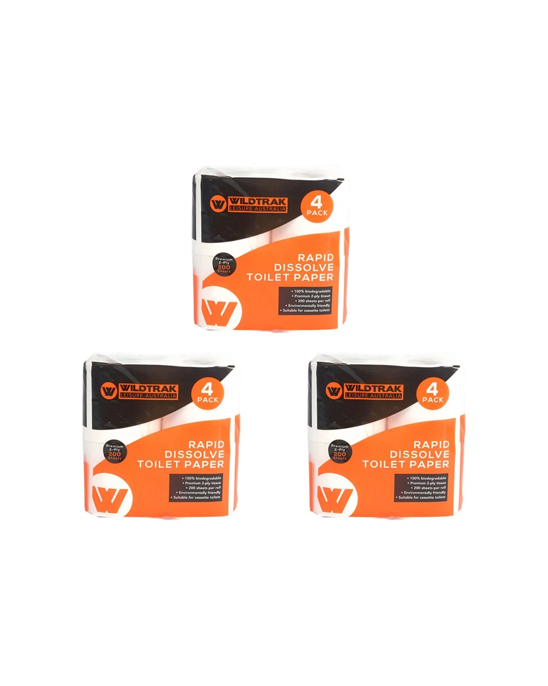 Wildtrak Rapid Dissolve Camping Toilet Paper Rolls 3 x 4pc Biodegradable - White
