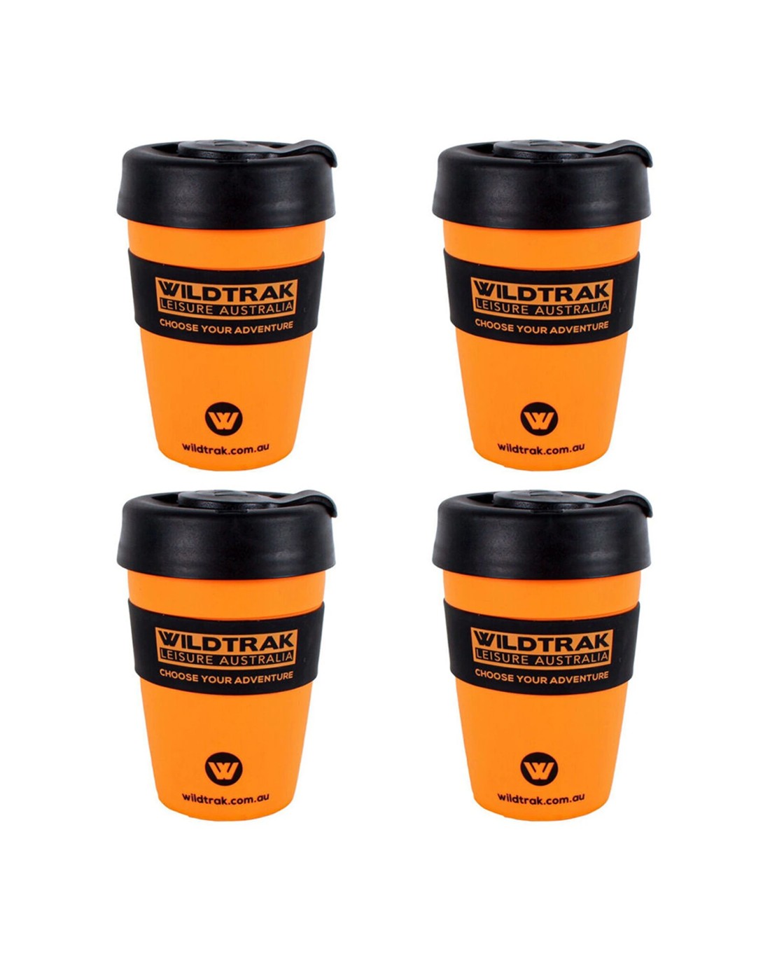 Wildtrak Reusable Travel Coffee Cup 4 Pack With Splash Proof Lid 350ml - Orange