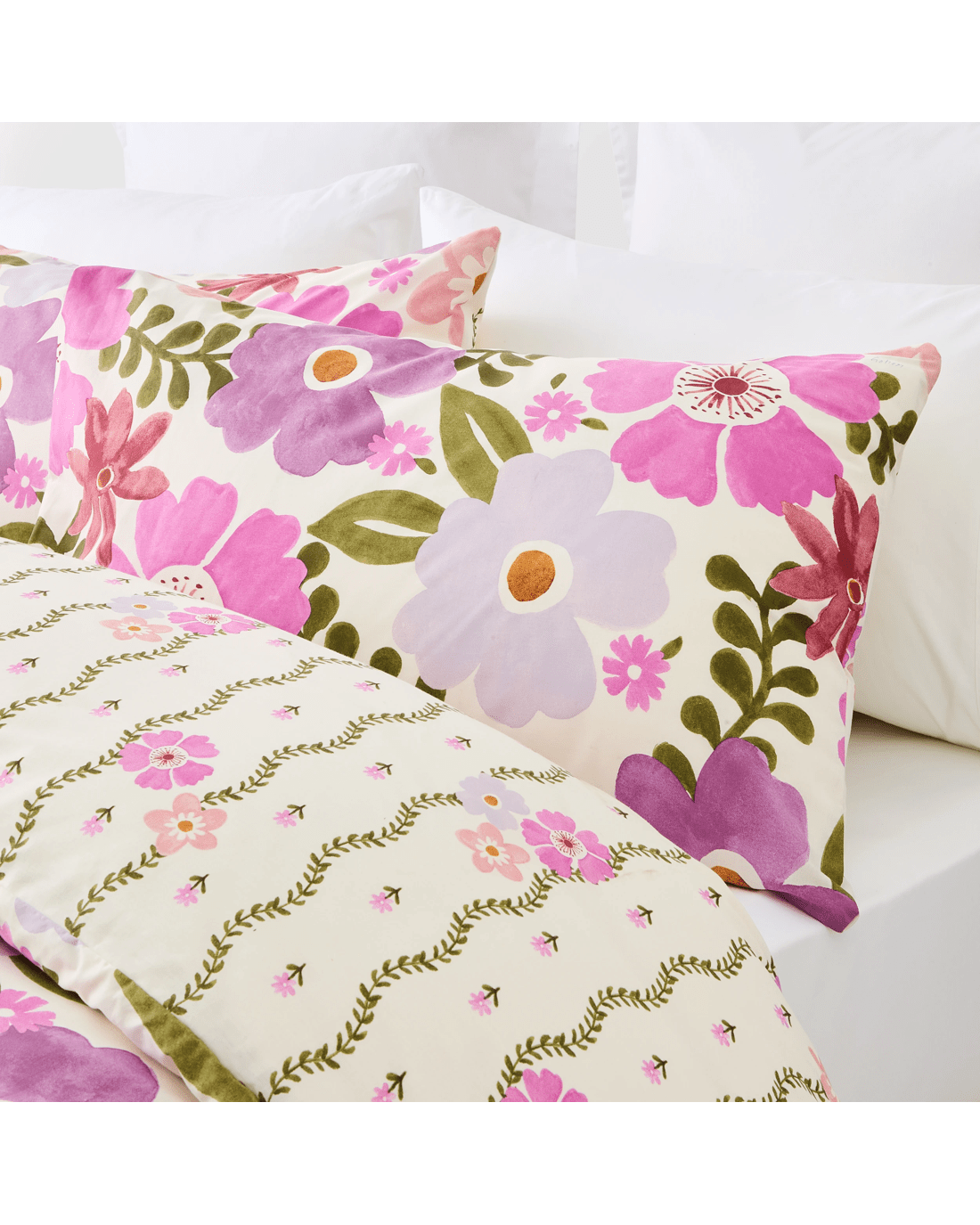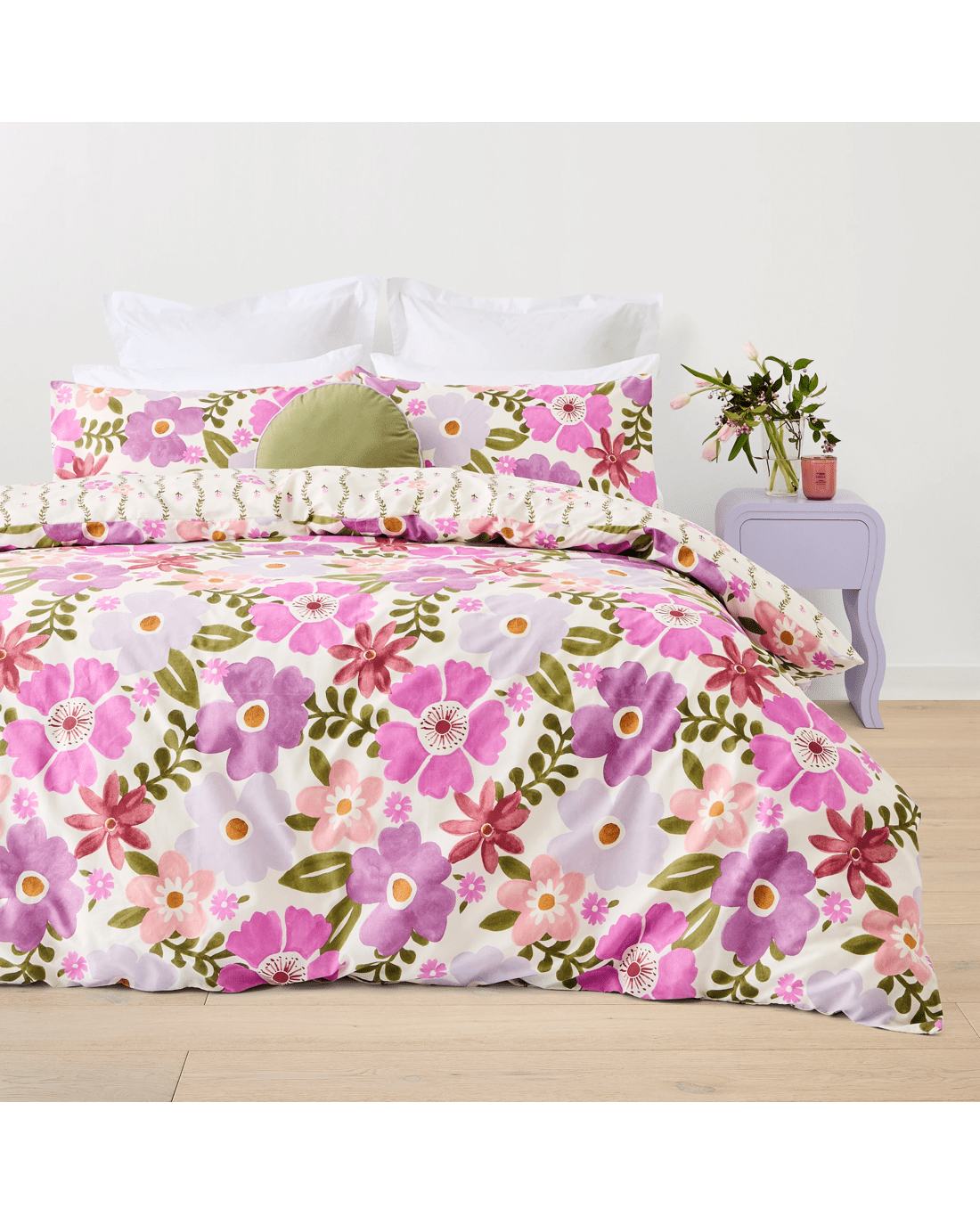 Winnie Cotton Rich Reversible Quilt Cover Set - Queen Bed