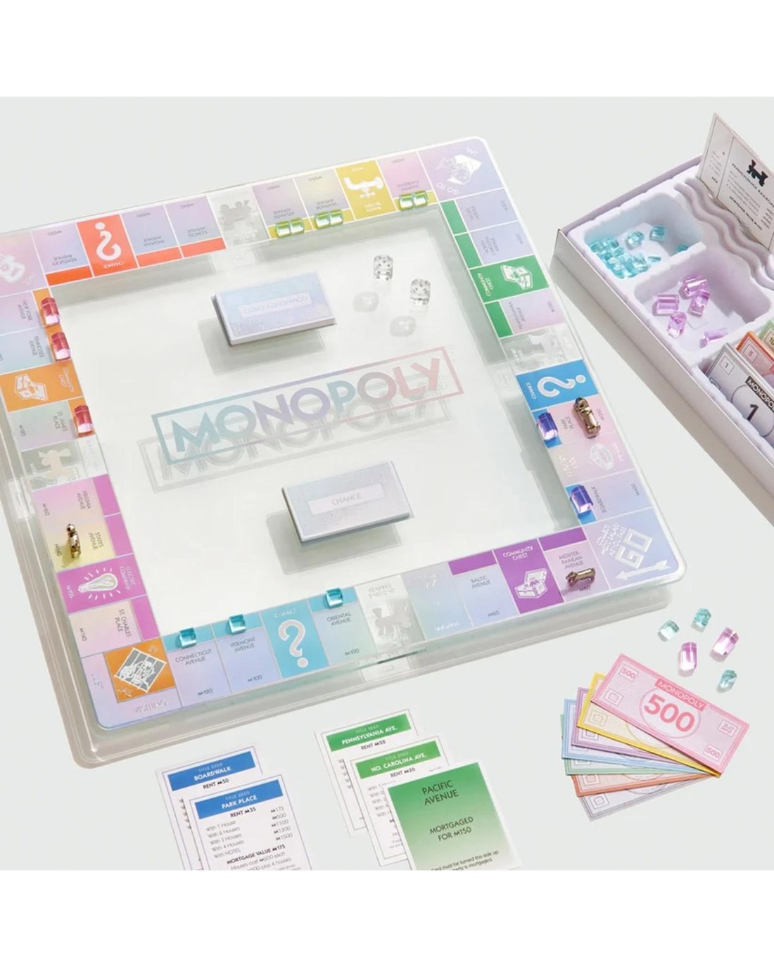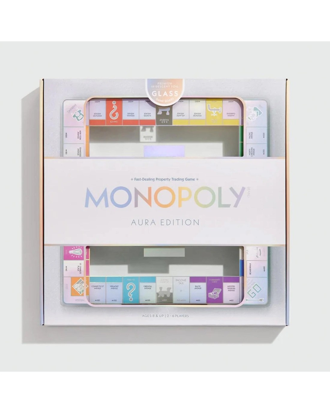 Transform your game night with Monopoly Aura Edition. This exquisite glass game board features vibrant, shimmering colors and elegant iridescent foil accents that bring each property to life. The translucent houses, hotels, and dice add a sophisticated touch, perfectly complementing the board's luxurious design. Elevate your gaming experience and showcase your personal style with Monopoly Aura Edition. Every move becomes a masterpiece, allowing your inner tycoon to shine. Ideal for those who appreciate both classic gameplay and stunning design. Ages: 8 + | Players: 2 - 6 | Playtime: 60 + Mins