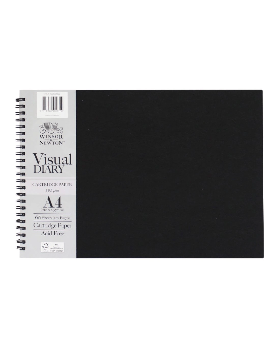 Winsor & Newton A4 Visual Art Diary 110gsm 60 Sheets Black
