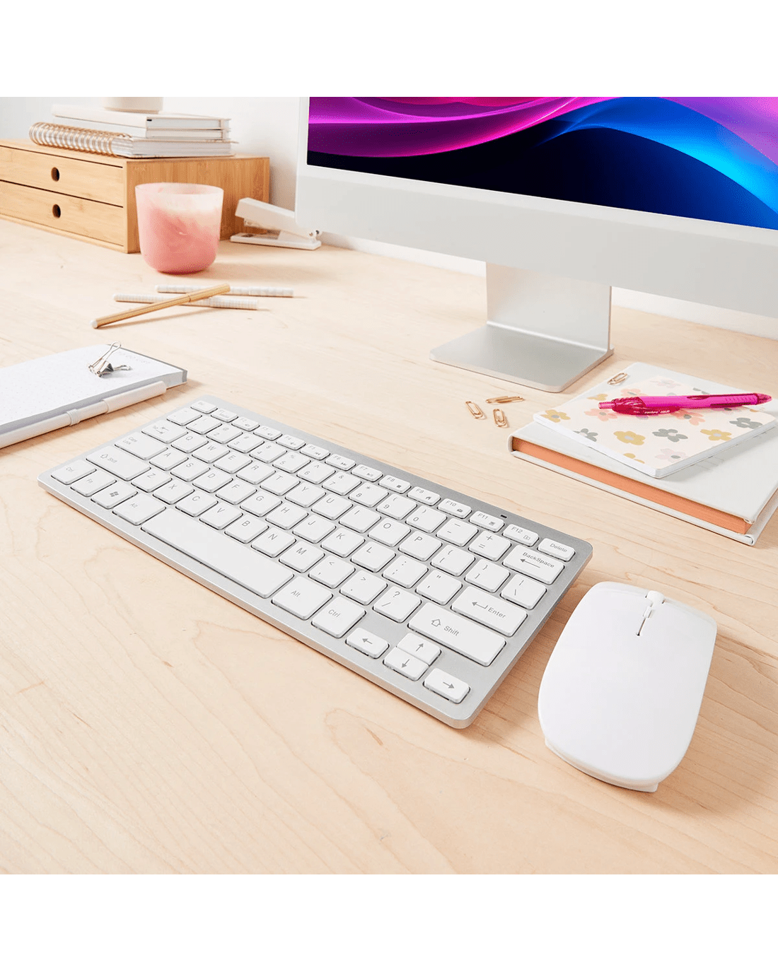Wireless Keyboard and Mouse Combo - White and Silver