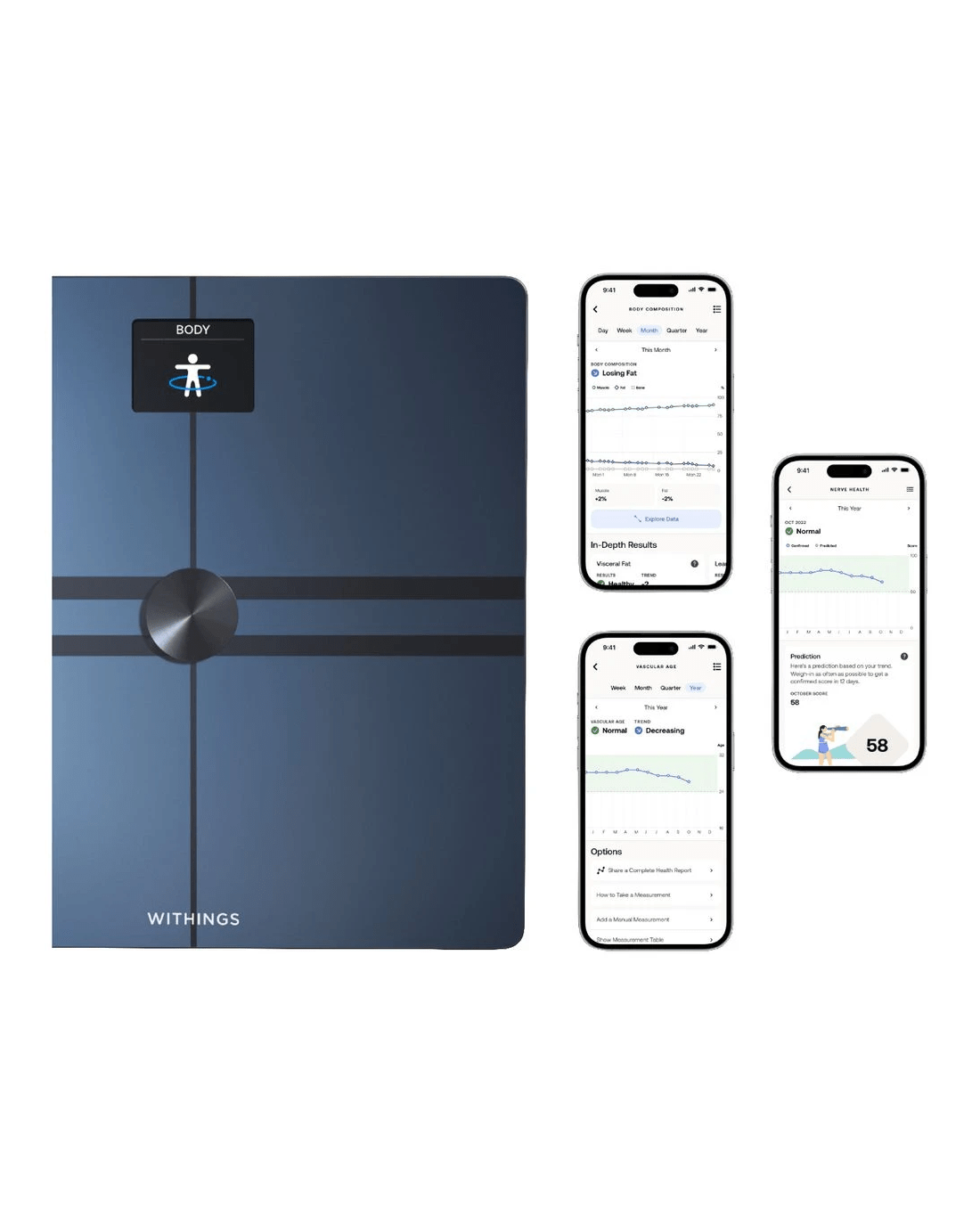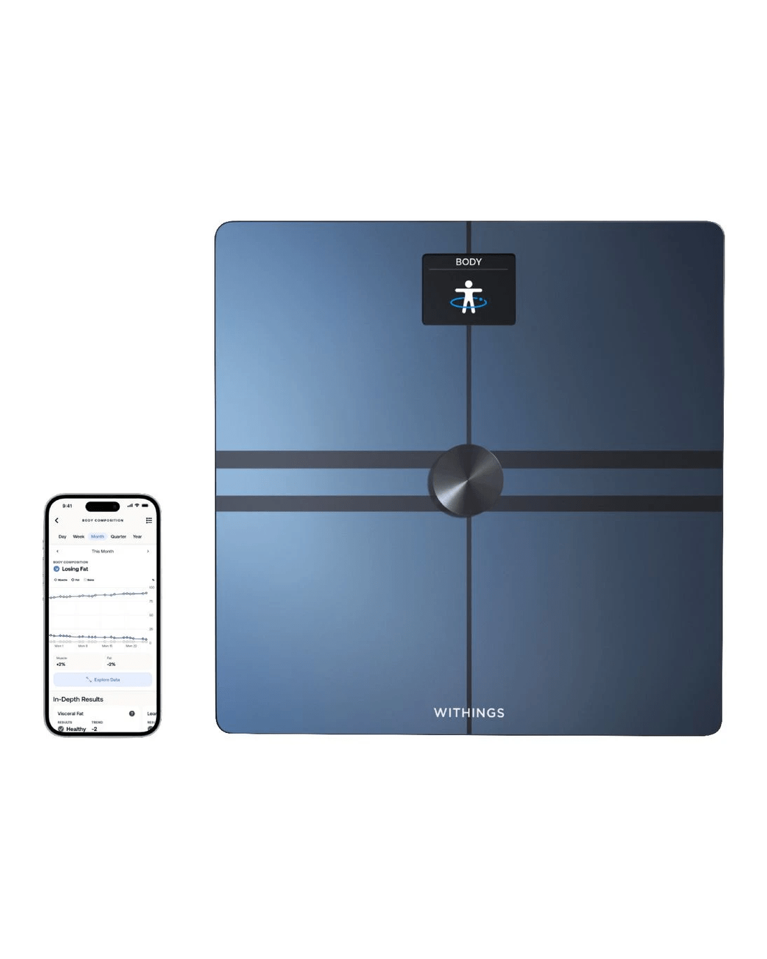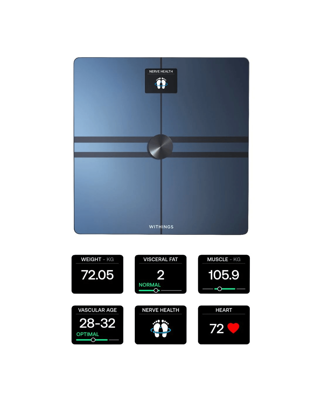 This Withings Body Comp Scale lets you track your health and fitness journey thanks to precise weight measurements, advanced body composition metrics, cardiovascular insights and a nerve health assessment. This smart scale connects to the Withings app for a complete health experience that helps you create routines to improve your wellness. Its multi-frequency bioimpedance analysis provides precise body composition metrics including visceral fat so you’ll know where to focus your health efforts.