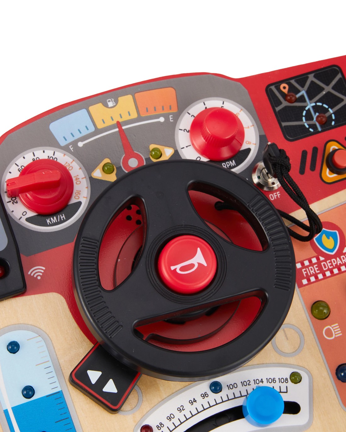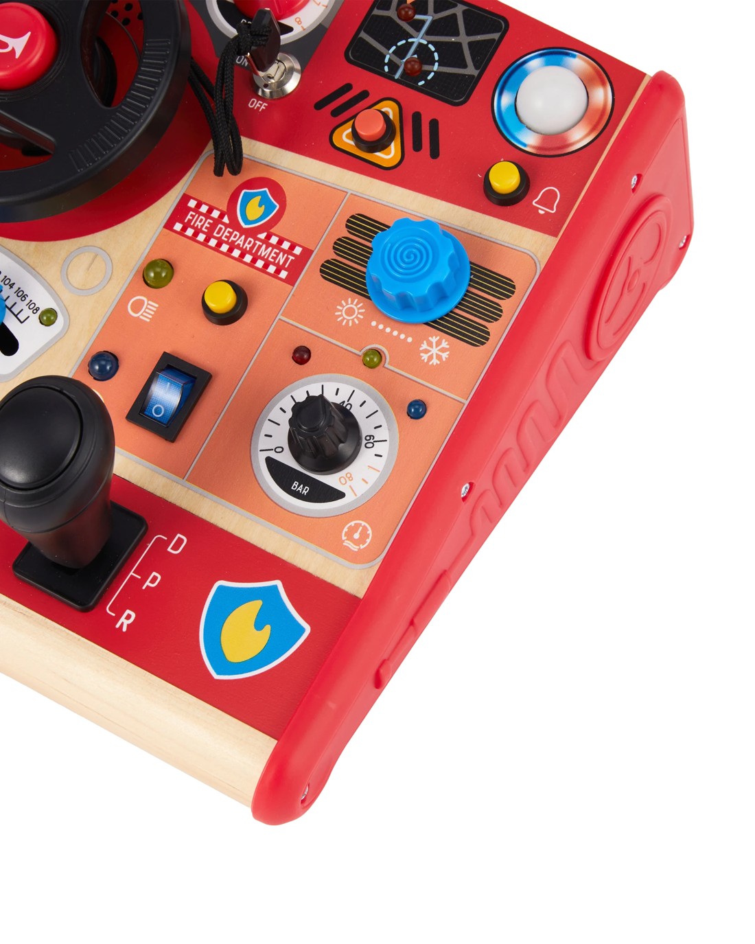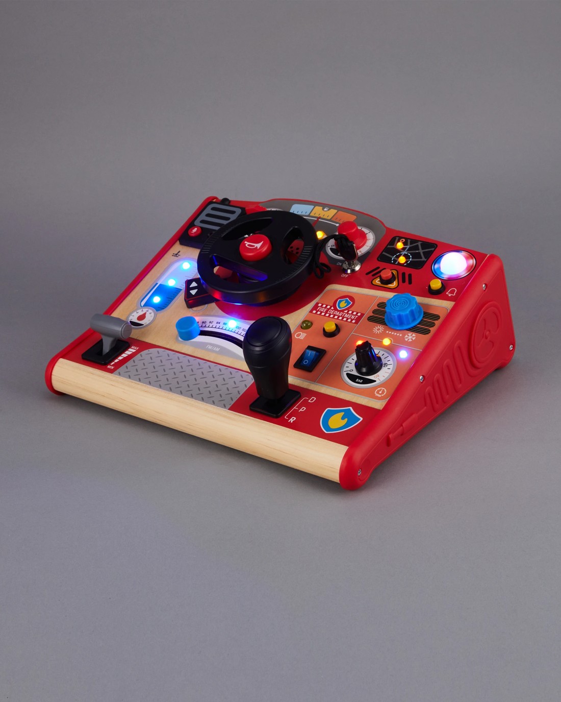 Let your little one buckle up for bright and busy pretend play fun with this Wooden LED Driving Station. Wooden details and glowing lights set the scene for imaginative journeys and role play adventures.