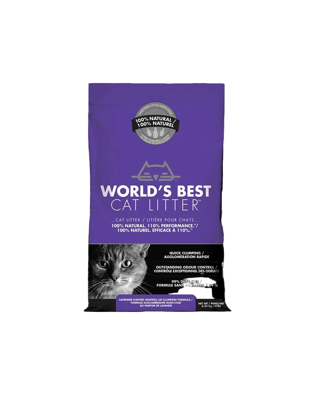 Worlds Best Cat Litter Multi Cat Lavender is a corn based, eco friendly, odour-reducing clumping cat litter, with a pleasant lavender scent