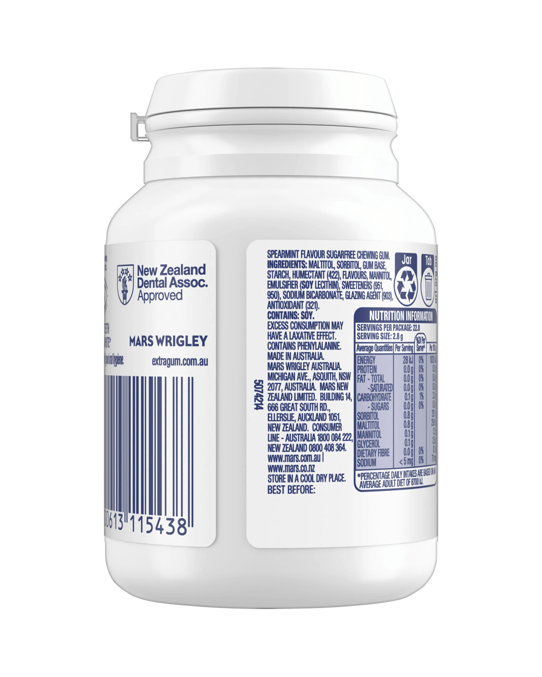Sold by KmartWrigley's 46 Piece Extra White Spearmint Sugar Free Chewing Gum 64g