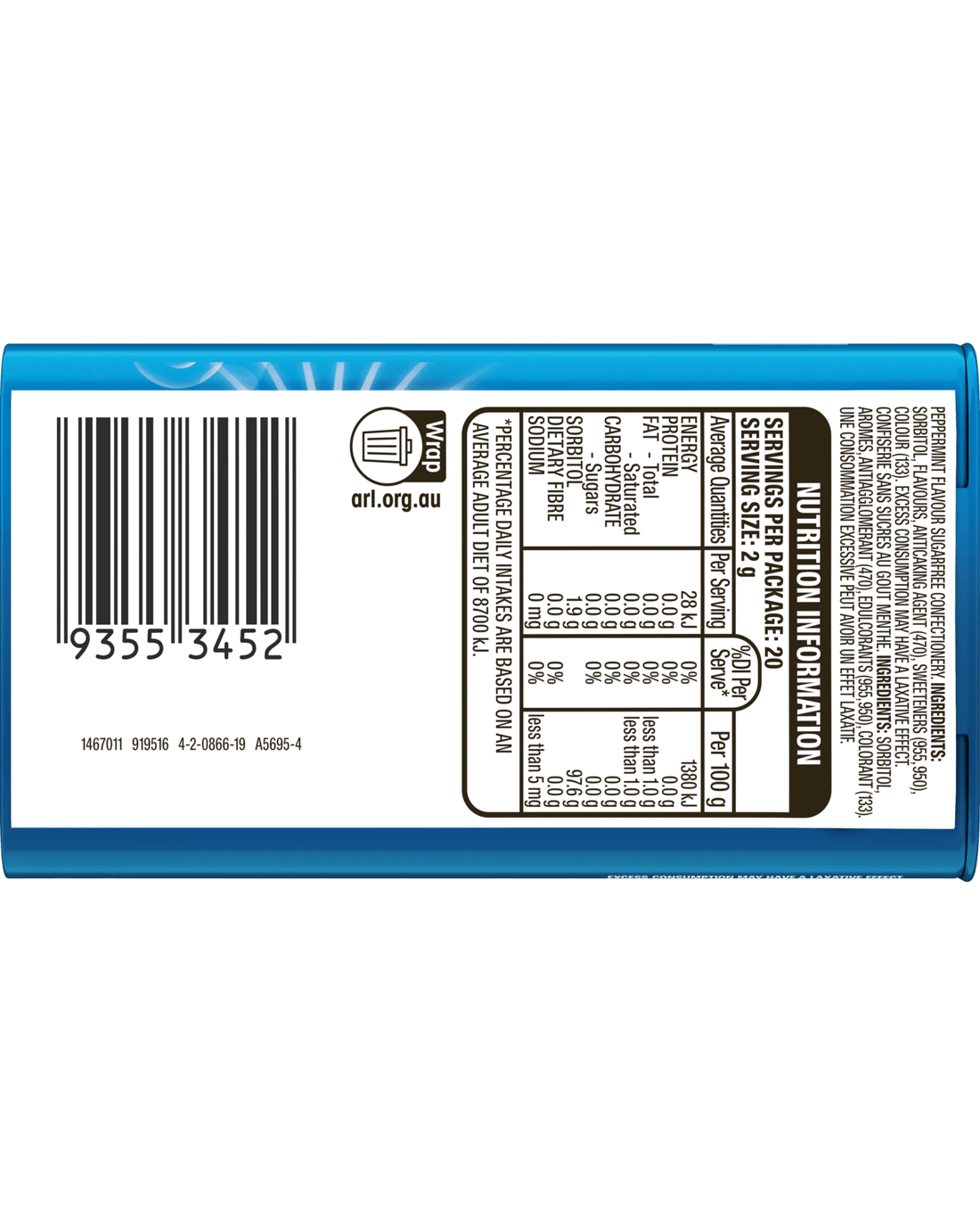 Wrigley's Eclipse Peppermint Sugarfree Mints Tin 40g