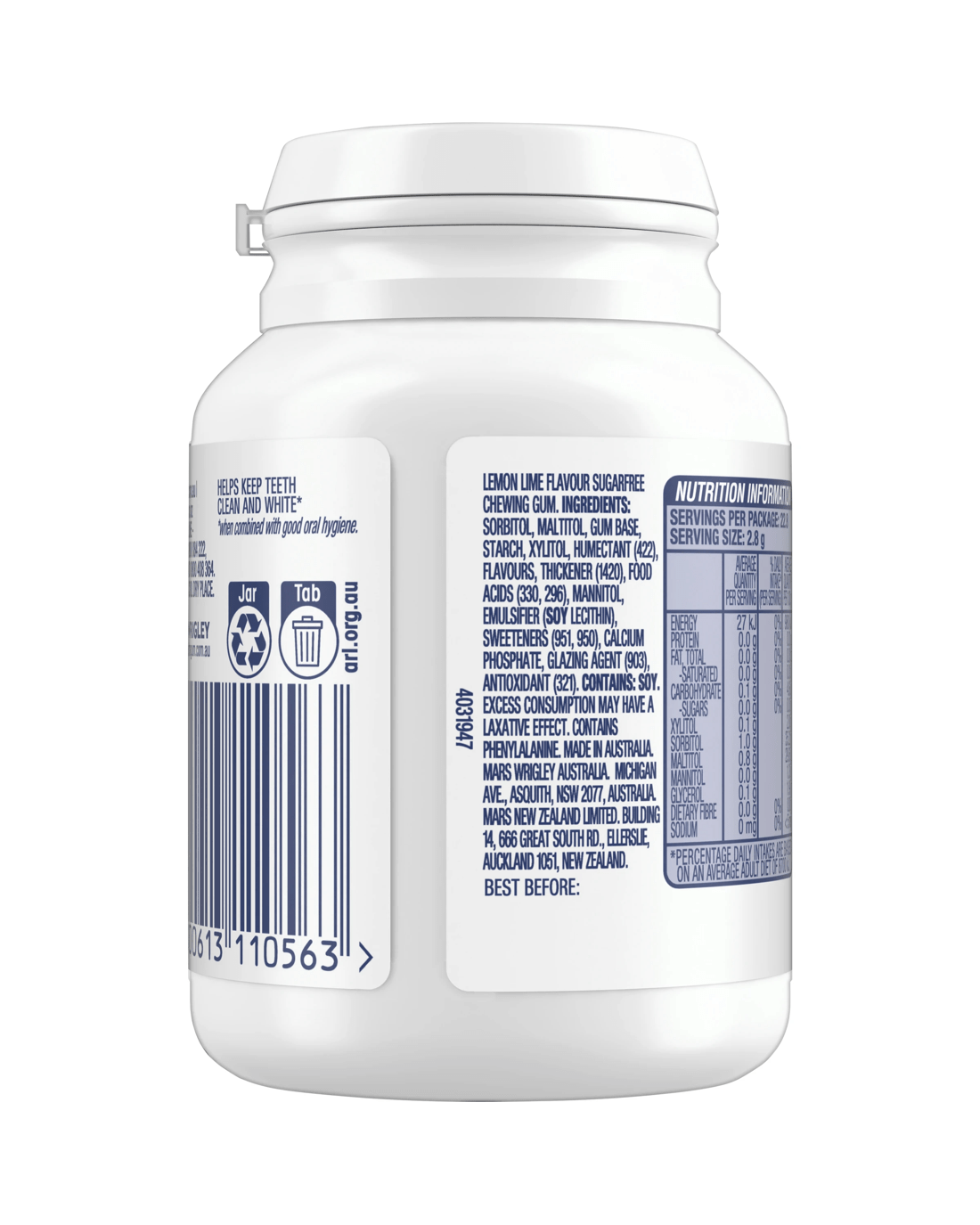 • Includes 46 x pieces of extra white lemon lime Sugar Free Chewing Gum