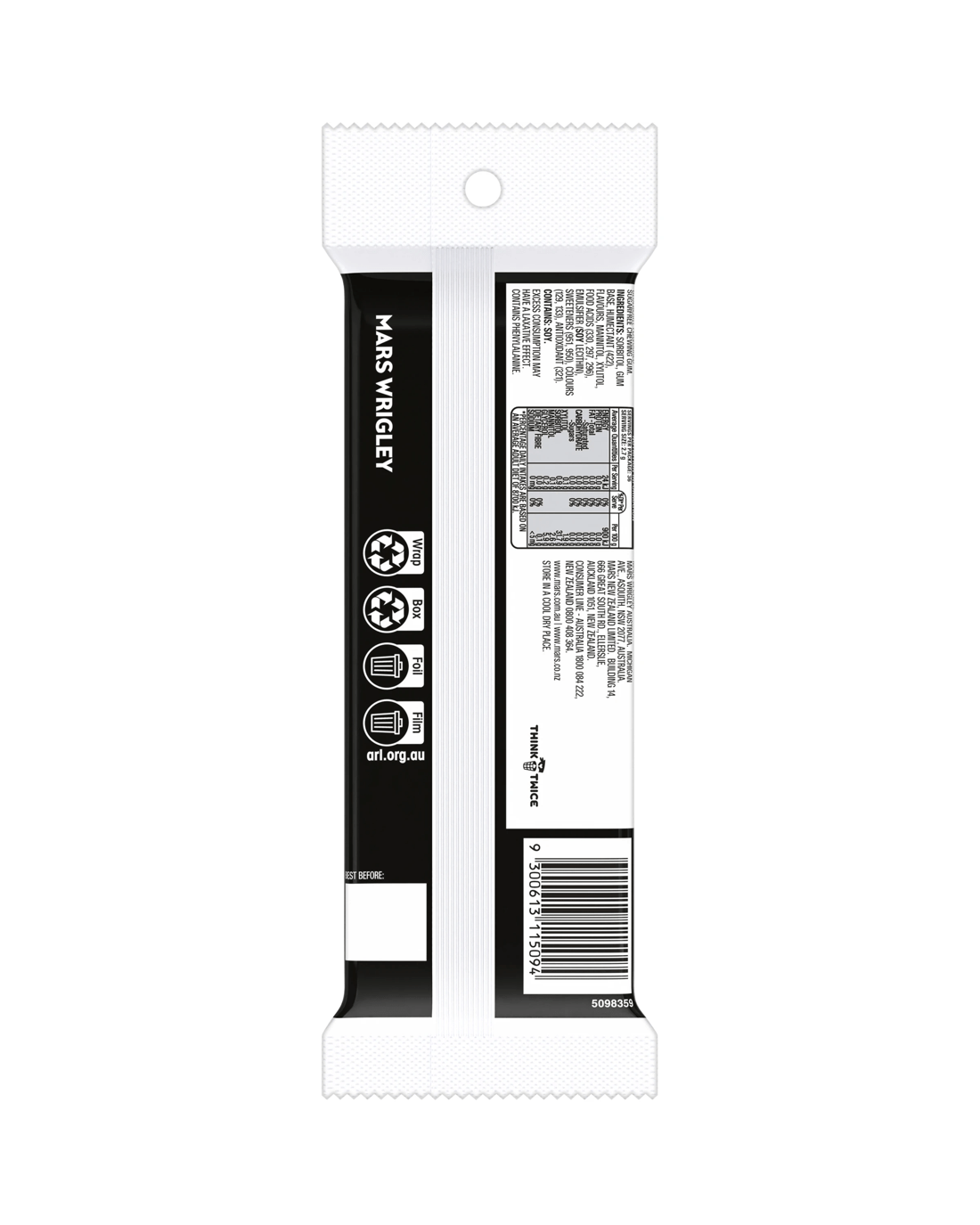 • Ingredients: Sorbitol, Gum Base, Humectant (422), Flavours, Mannitol, Xylitol, Food Acids (330, 297, 296), Emulsifier (Soy Lecithin), Sweeteners (951, 950), Colours (129, 133) and Antioxidant (321)