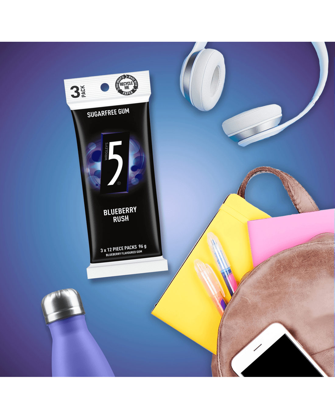 It's not when you take the stage, it’s the five seconds before. So grab a stick of 5 Gum Blueberry Rush Sugar Free Chewing Gum and harness that adrenaline. Experience the exhilarating upfront rush of mouthwatering blueberry juiciness followed by a long-lasting fruit gum flavour that only 5 Gum Chewing Gum delivers. With 12 pieces in each of these three 5 Gum packs, there’s enough breath freshening chewing gum to share with mates, so you take on more life together. Best of all, 5 Gum is a sugarless gum! From tense gaming sessions with your mates to crashing the skate park with your crew, life happens in 5. So grab a stick of 5 Gum Blueberry Rush Chewing Gum from your bulk gum pack and show them what you can do.