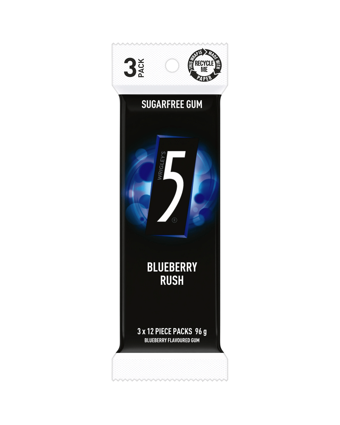 Wrigley's 3 Pack 5 Blueberry Rush Sugarfree Gum 96g