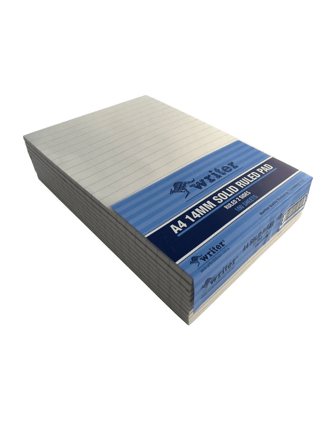 Sold by OfficeworksWriter A4 14mm Ruled Writing Pad 100 Sheets
