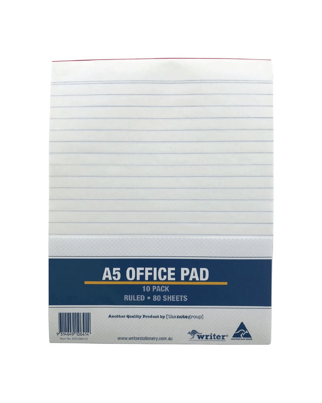Sold by OfficeworksWriter A5 Office Pad Ruled 80 Sheets 10 Pack