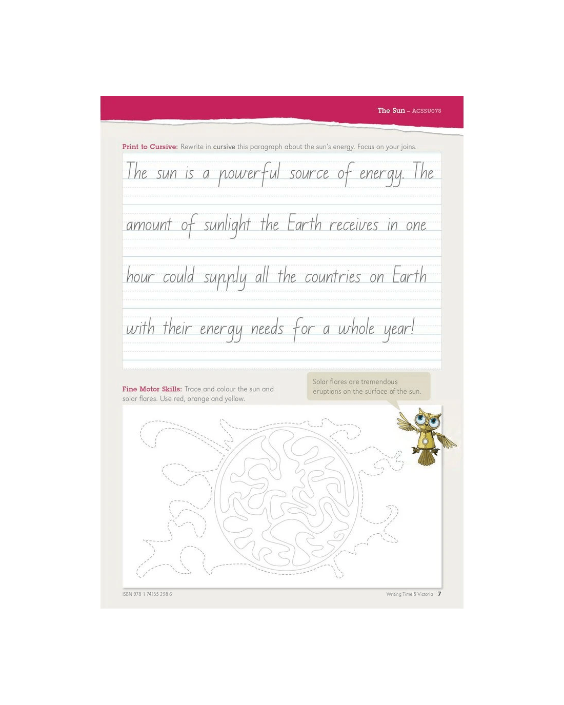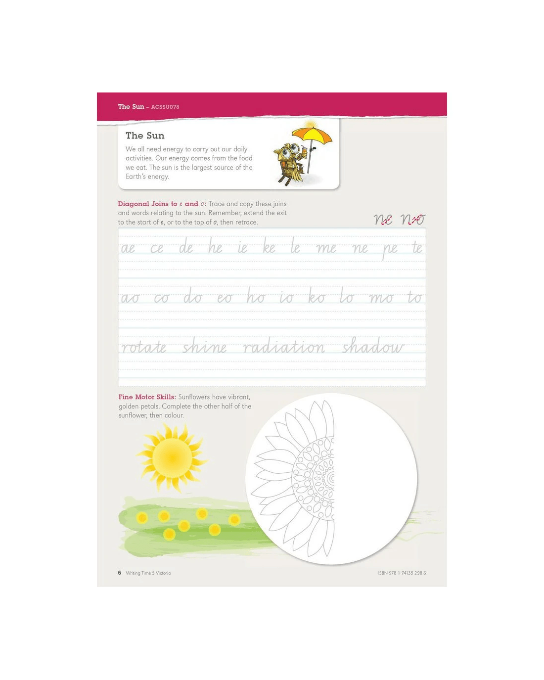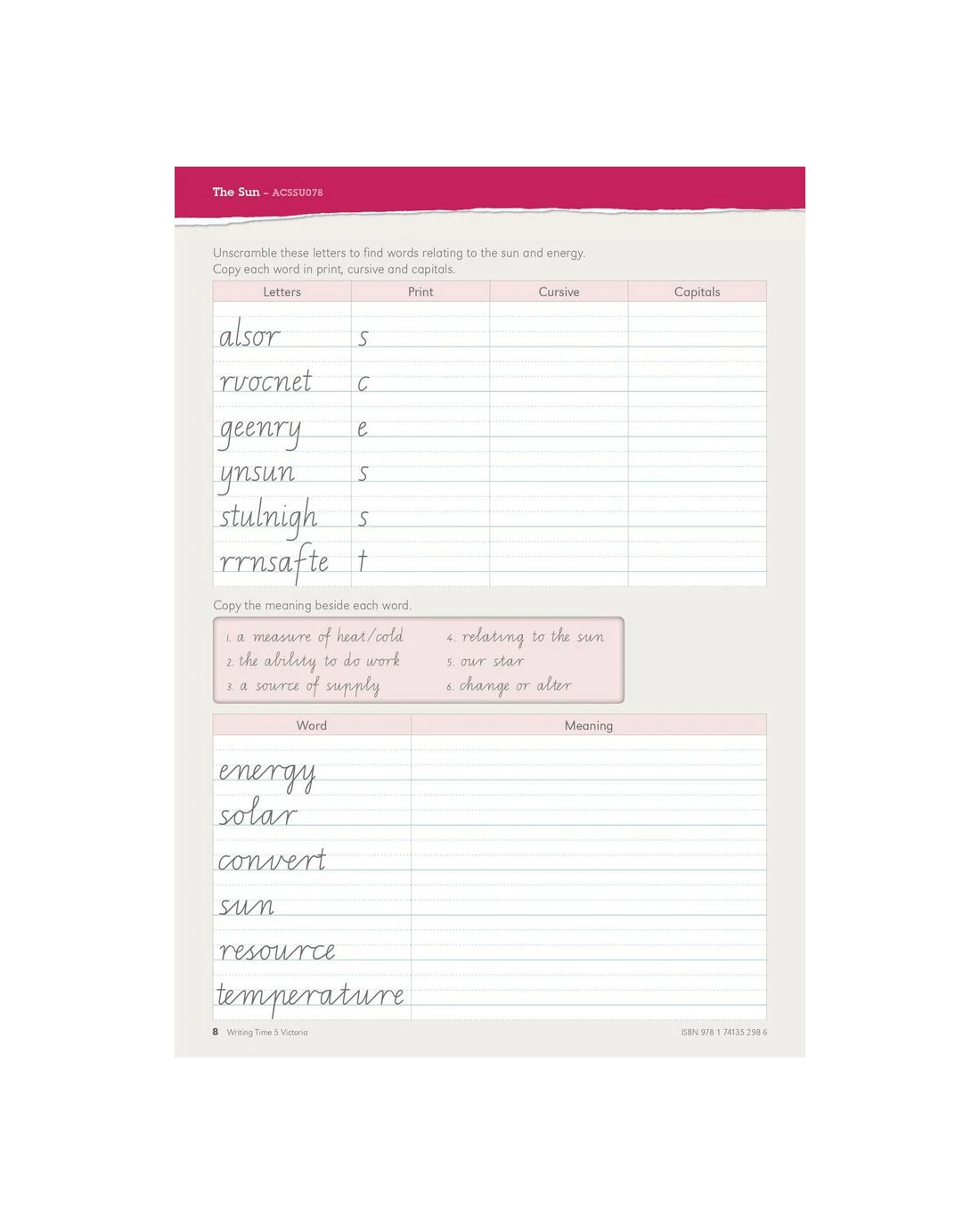 Writing Time VIC Modern Cursive Book 5 helps students to develop and improve their fluency and legibility by practising their letter spacing, word spacing and slope. It provides the tools and activities that parents and teachers need to help students develop fluent handwriting. It's ideal for ages 8 and over and helps to develop early literacy skills.