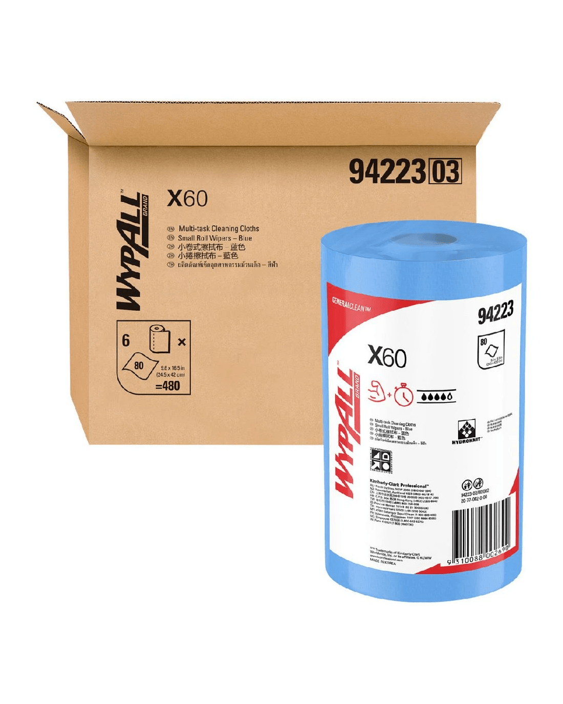 WyPall X60 Small Roll Wipes 80 Sheet 6 Pack